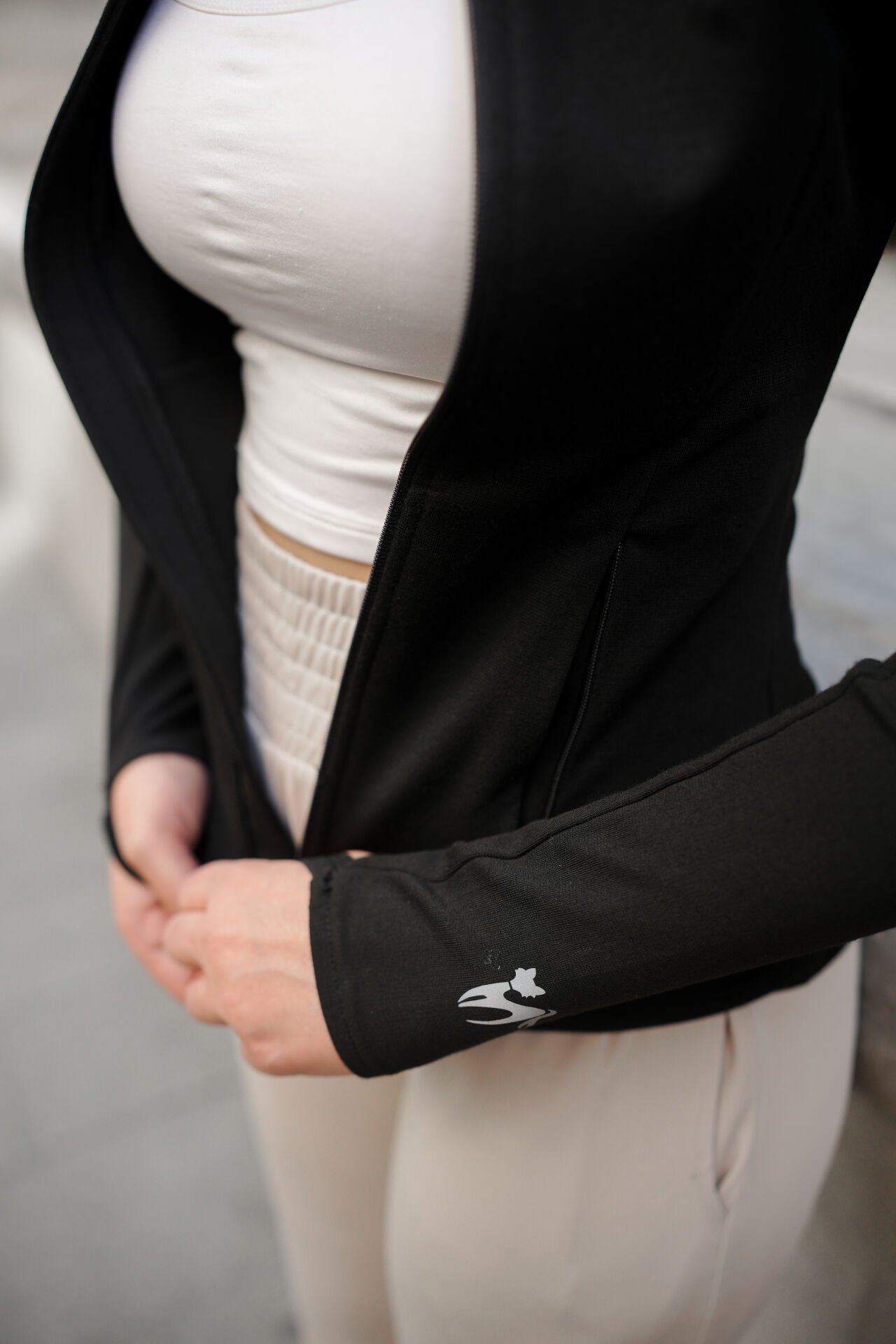 Kadın Baskılı Range Rower Baskılı Spor Uzun Ceket M - SİYAH