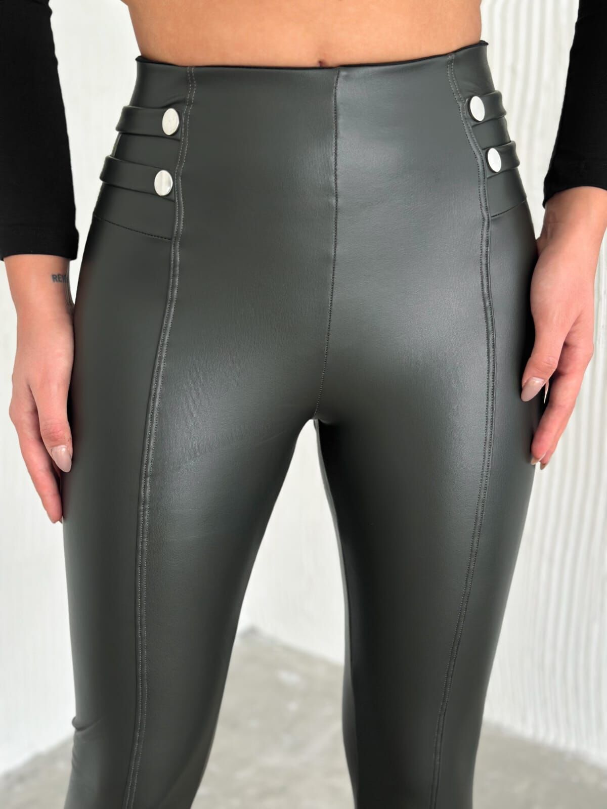 Bel Detaylı Deri Tayt 6001