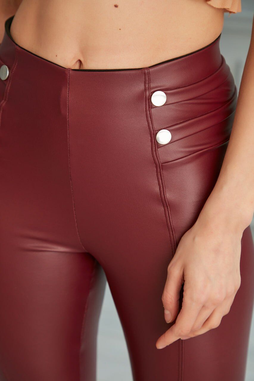 Bel Detaylı Deri Tayt 6001 S - BORDO
