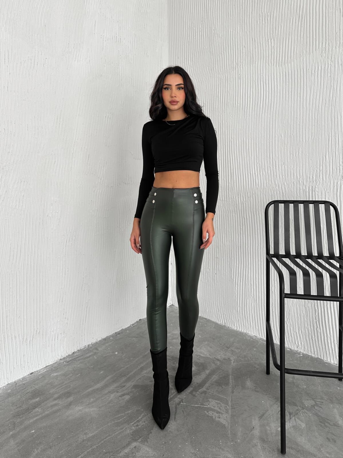 Bel Detaylı Deri Tayt 6001 S - HAKİ