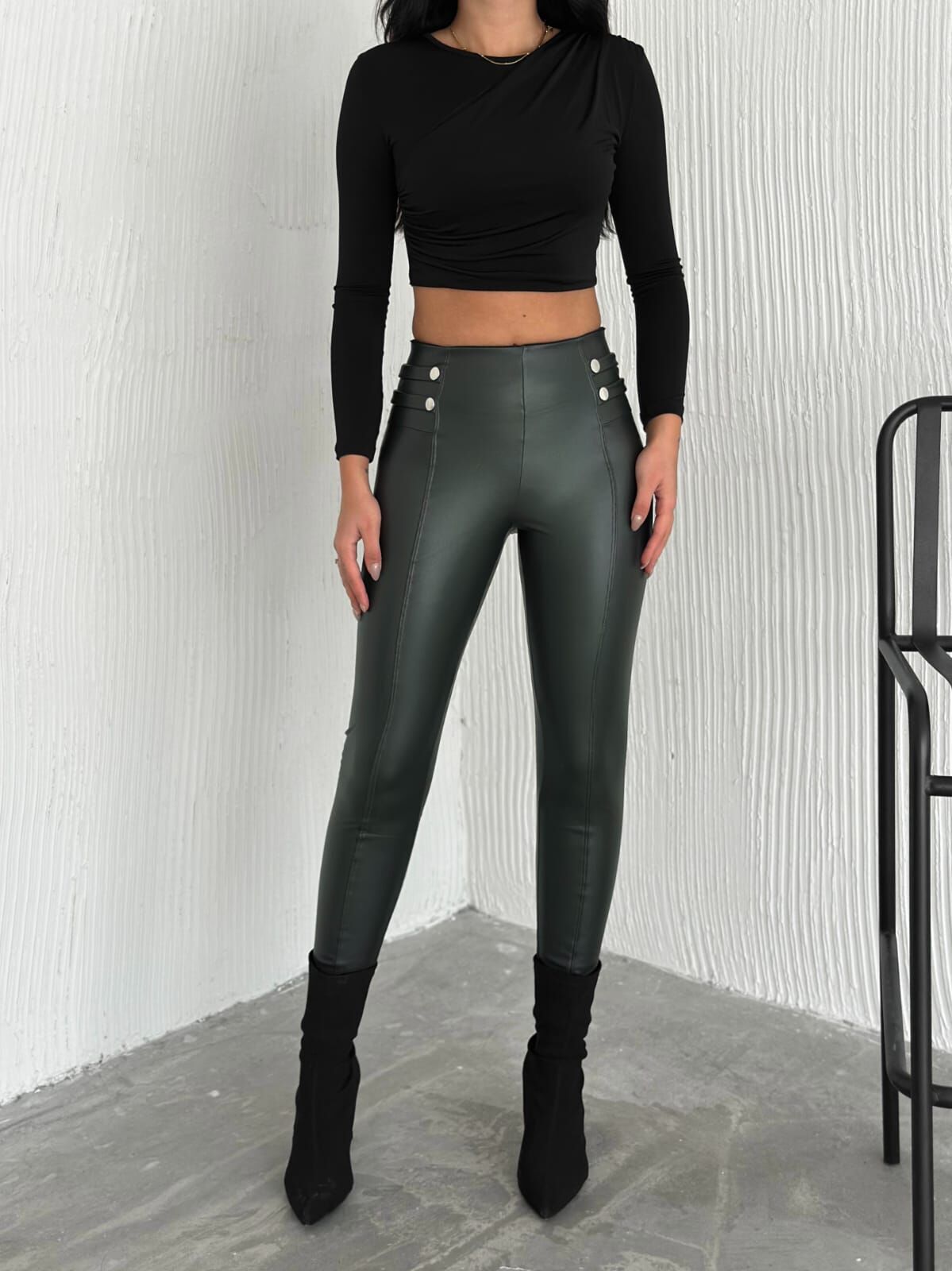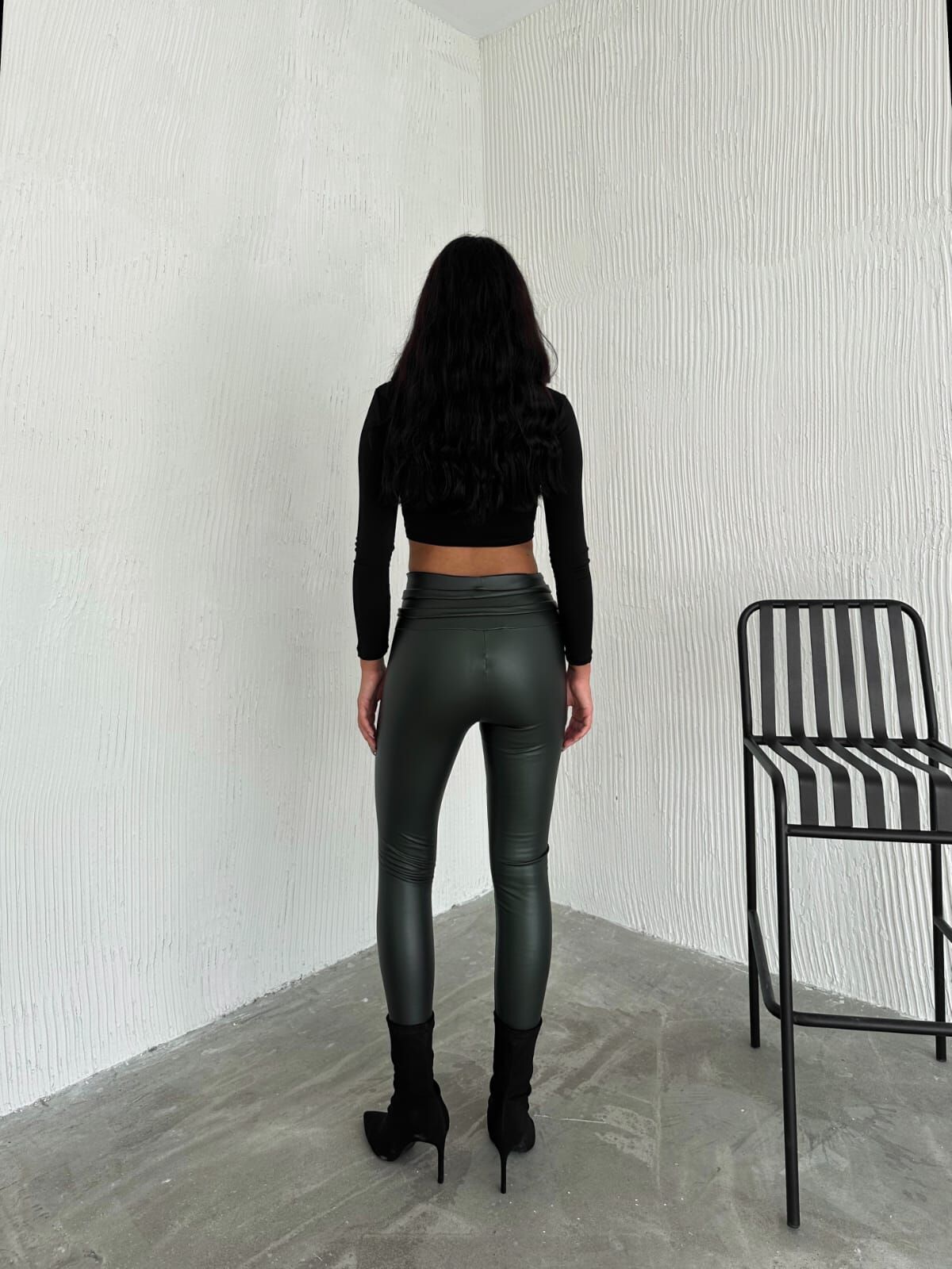 Bel Detaylı Deri Tayt 6001 XL - HAKİ