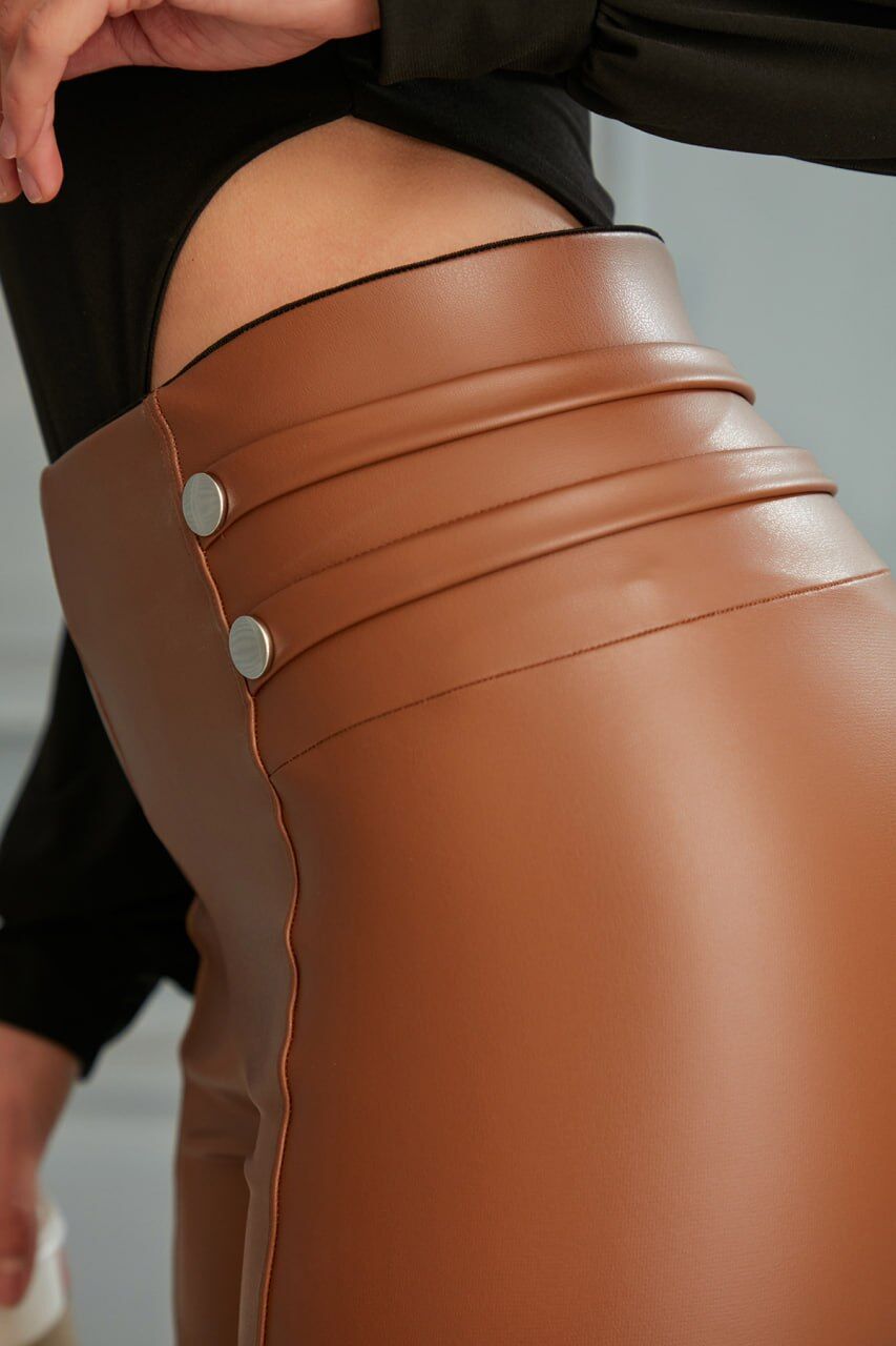 Bel Detaylı Deri Tayt 6001 XL - KAHVERENGİ