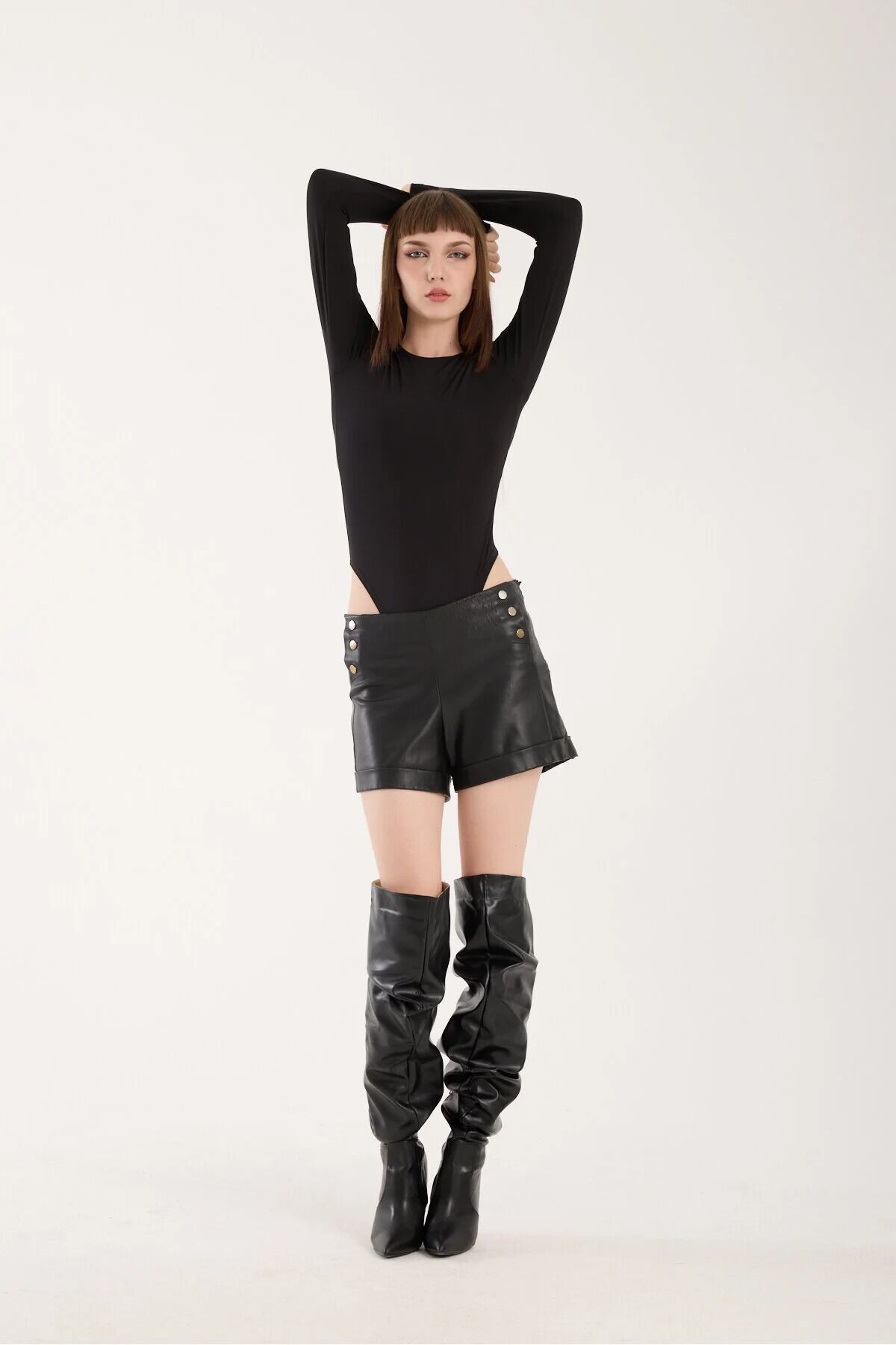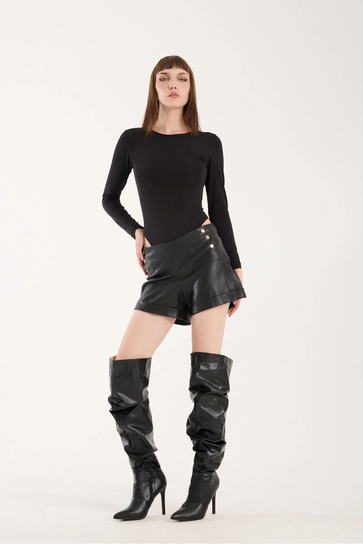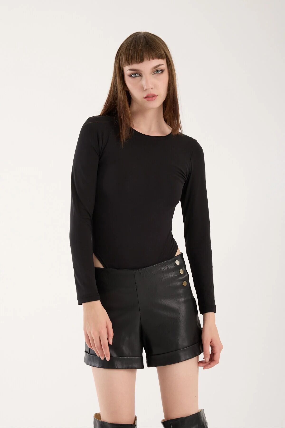 Uzun Kollu Bisiklet Yaka Çıtçıtlı Body