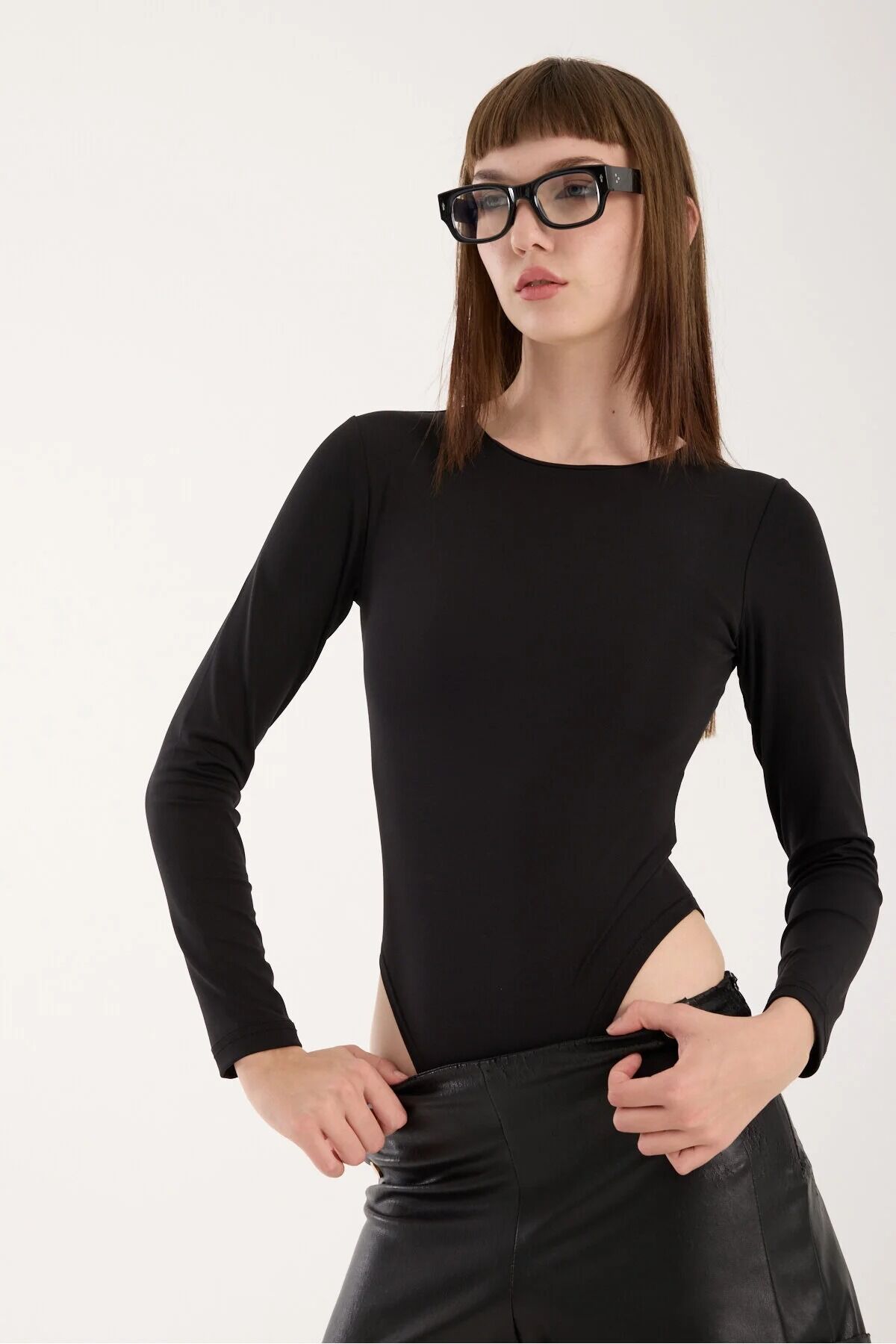 Uzun kollu bisiklet yaka çıtçıtlı body, uzun kollu zıbınlı body olarak da bilinir. Likralı kumaştan üretilmiş olup, tam beden ölçülerine sahiptir ve iç göstermeyen yapısıyla güvenli kullanım sağlar.