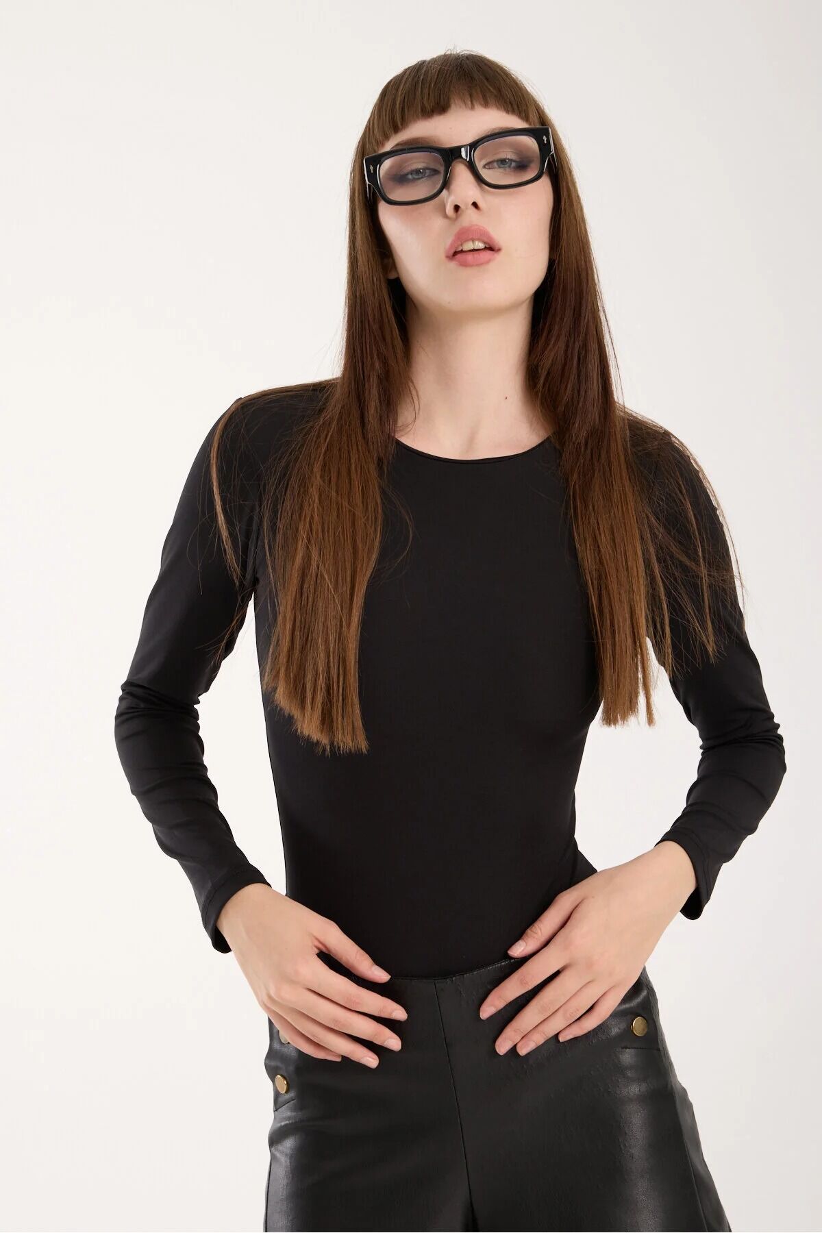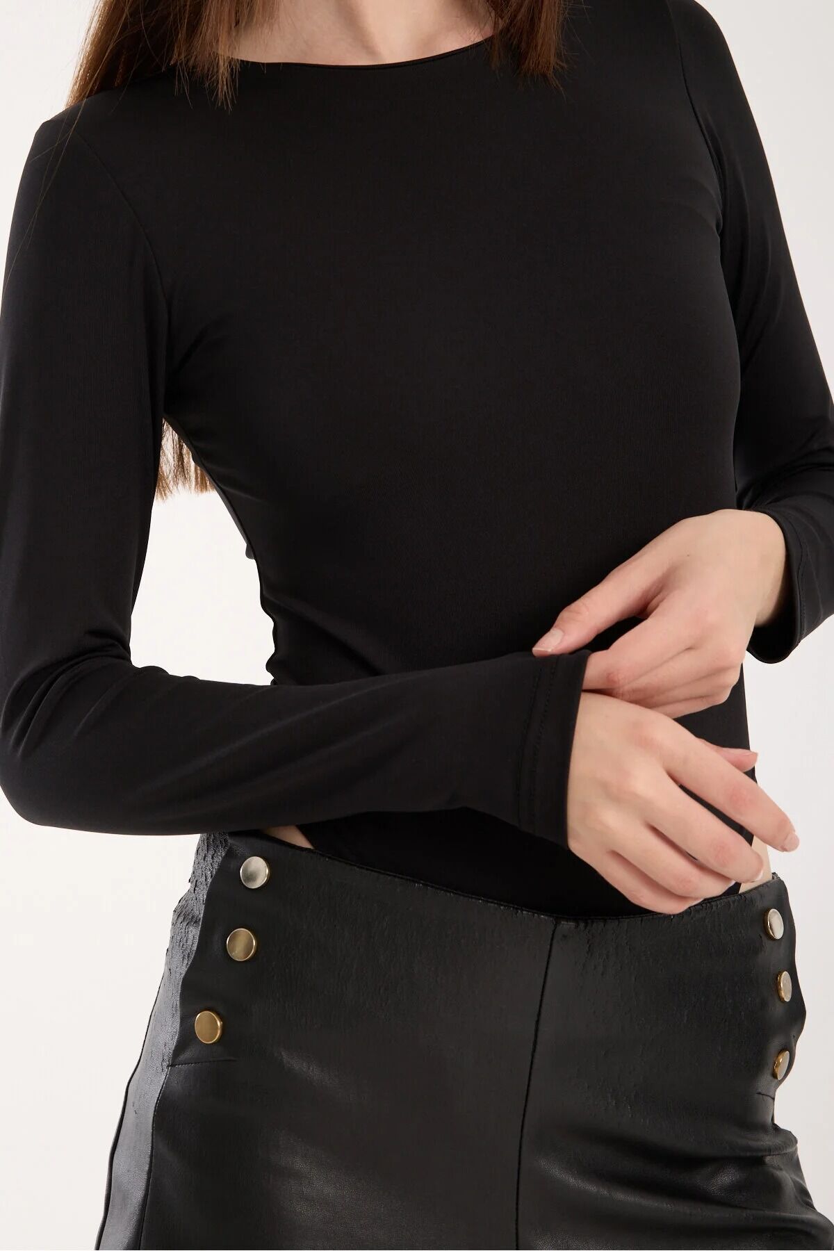 Kadın Bisiklet Yaka Alttan Çıtçıtlı Uzun Kol Body XL - SİYAH
