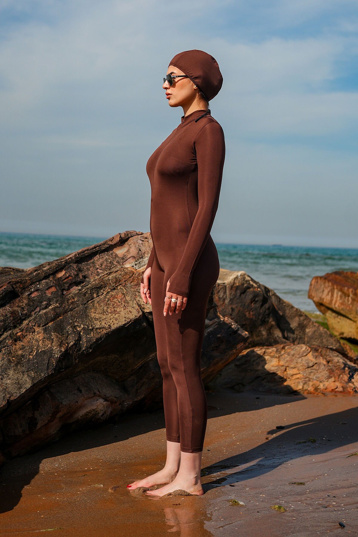 Kadın Uzun Mayo Tulum BONELİ - WM S - KAHVERENGİ