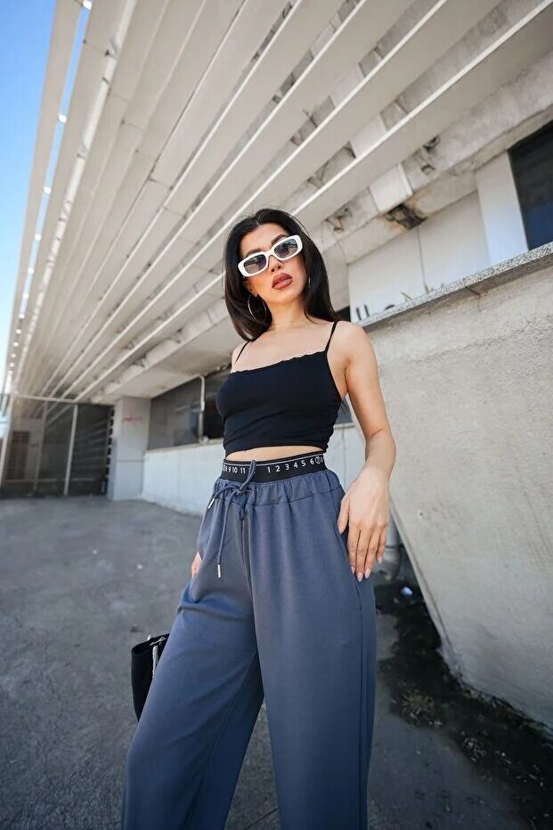 Kadın Günlük ve Spor Bel Lastikl Detaylı Baggy Eşofman Altı Cepli Pantolon
