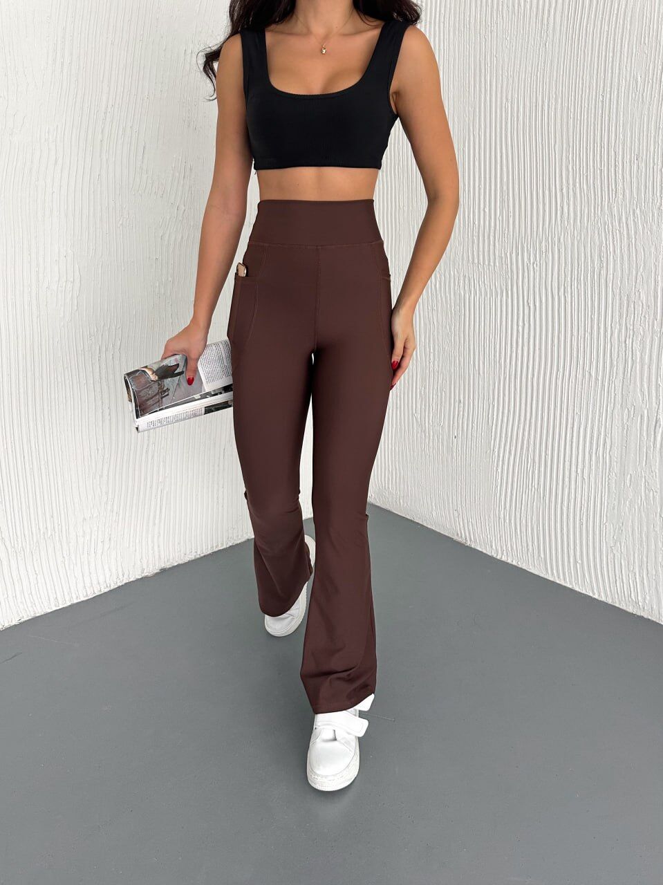 Kadın Günlük ve Spor İspanyol Tayt Pantolon WM M - KAHVERENGİ