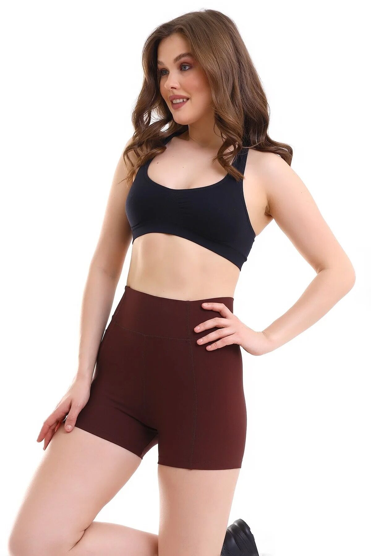 Kadın Sıkıştırıcılı Cepli Korse Kumaş Taytlı Şort L - KAHVERENGİ