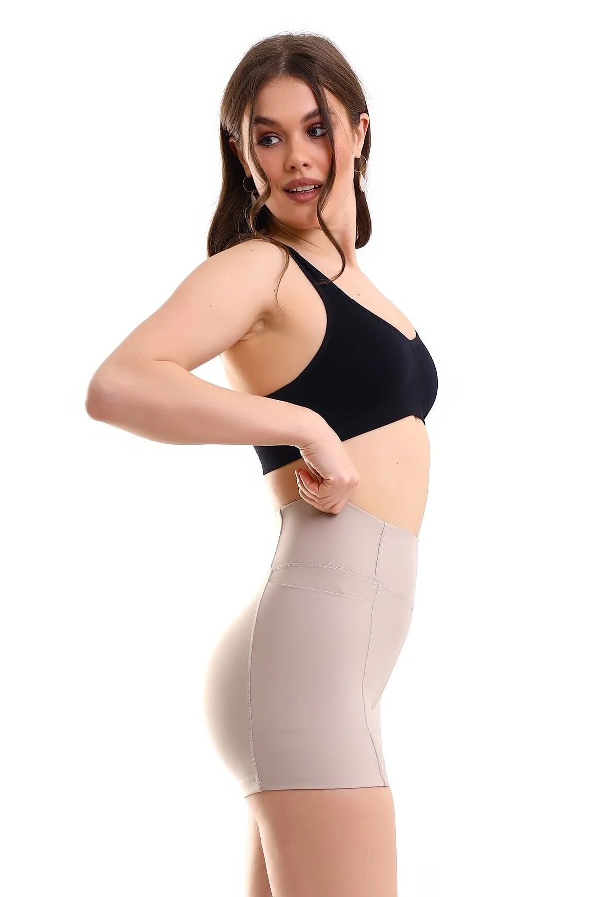 Kadın Sıkıştırıcılı Cepli Korse Kumaş Taytlı Şort M - BEJ