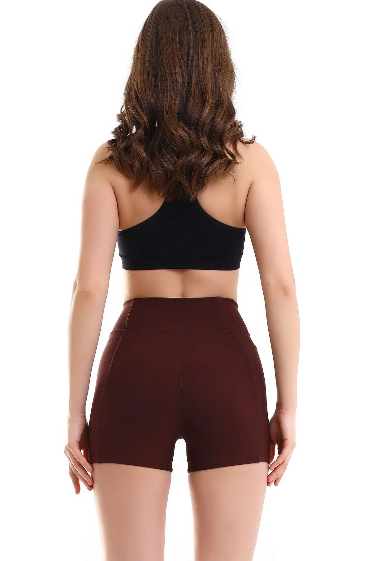 Kadın Sıkıştırıcılı Cepli Korse Kumaş Taytlı Şort S - KAHVERENGİ