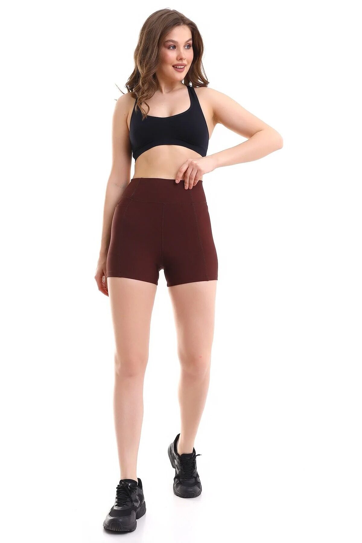 Kadın Sıkıştırıcılı Cepli Korse Kumaş Taytlı Şort XL - KAHVERENGİ