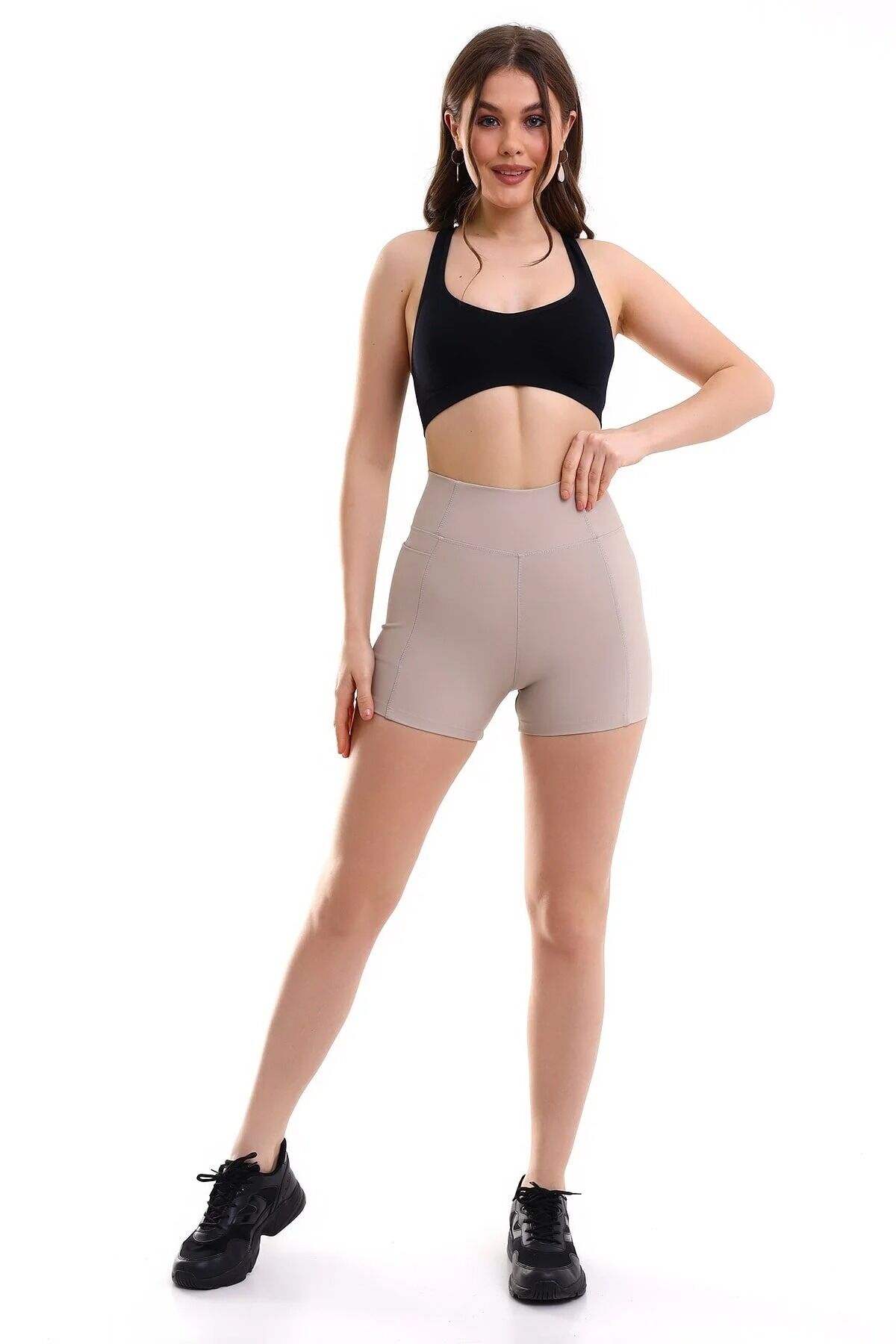 Kadın Sıkıştırıcılı Cepli Korse Kumaş Taytlı Şort XS - BEJ