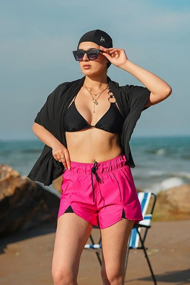 Poliamid kadın plaj şortu, Basic koleksiyonunun konfor odaklı parçalarından biridir ve günlük kullanım için ideal bir seçimdir. Mini boy tasarımı sayesinde plajda ve havuz kenarında rahat hareket etme özgürlüğü sunarken, şort alt silueti sportif bir görünüm kazandırır. Aktif yaşam tarzına uyum sağlayan bu model, dayanıklı dokuma kumaşı ve hızlı kuruyan poliamid yapısıyla uzun süreli kullanım imkânı sunar. Düz deseniyle zamansız bir stil yaratan ürün, tüm üst giyimlerle kolayca kombinlenebilir. Regular kalıbı vücuda ideal şekilde oturur, lastikli yapısı ise hareket serbestliğini destekler. İç göstermeyen özelliği sayesinde plajda, havuzda veya spor aktivitelerinde gönül rahatlığıyla tercih edilebilir. Winmoda güvencesiyle sunulan bu mini şort etek, hem şıklığı hem işlevselliği bir arada arayanlar için mükemmel bir seçenektir.