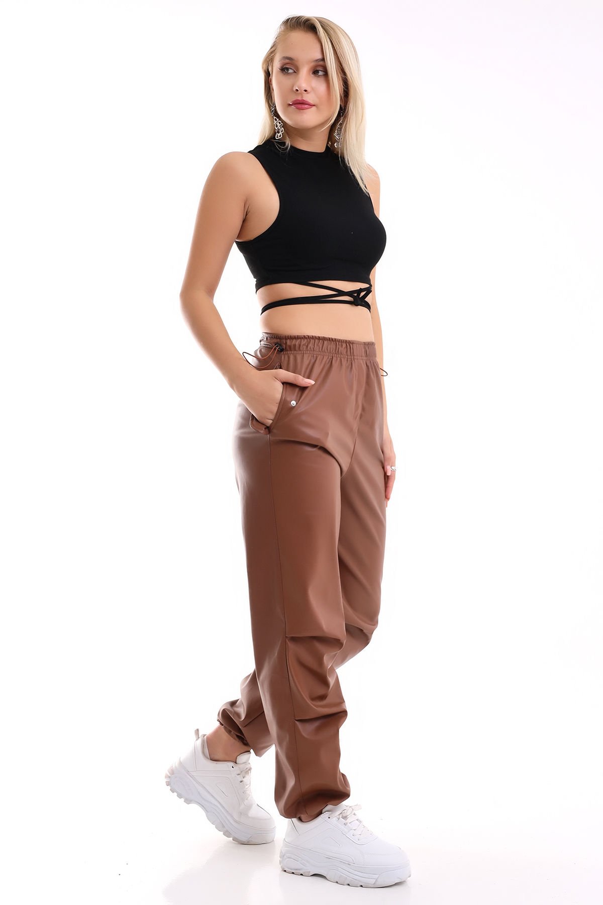 Kadın Paça Lastikli Cep Kapaklı Deri Pantolon M - KAHVERENGİKadın paça lastikli cep kapaklı deri pantolon; modern kesimiyle güçlü görünüm verir. Günlük ve gece kombinlerinde rahat, şık, iddialı duruş sağlar. Hemen keşfet5S8399T1CR_22139