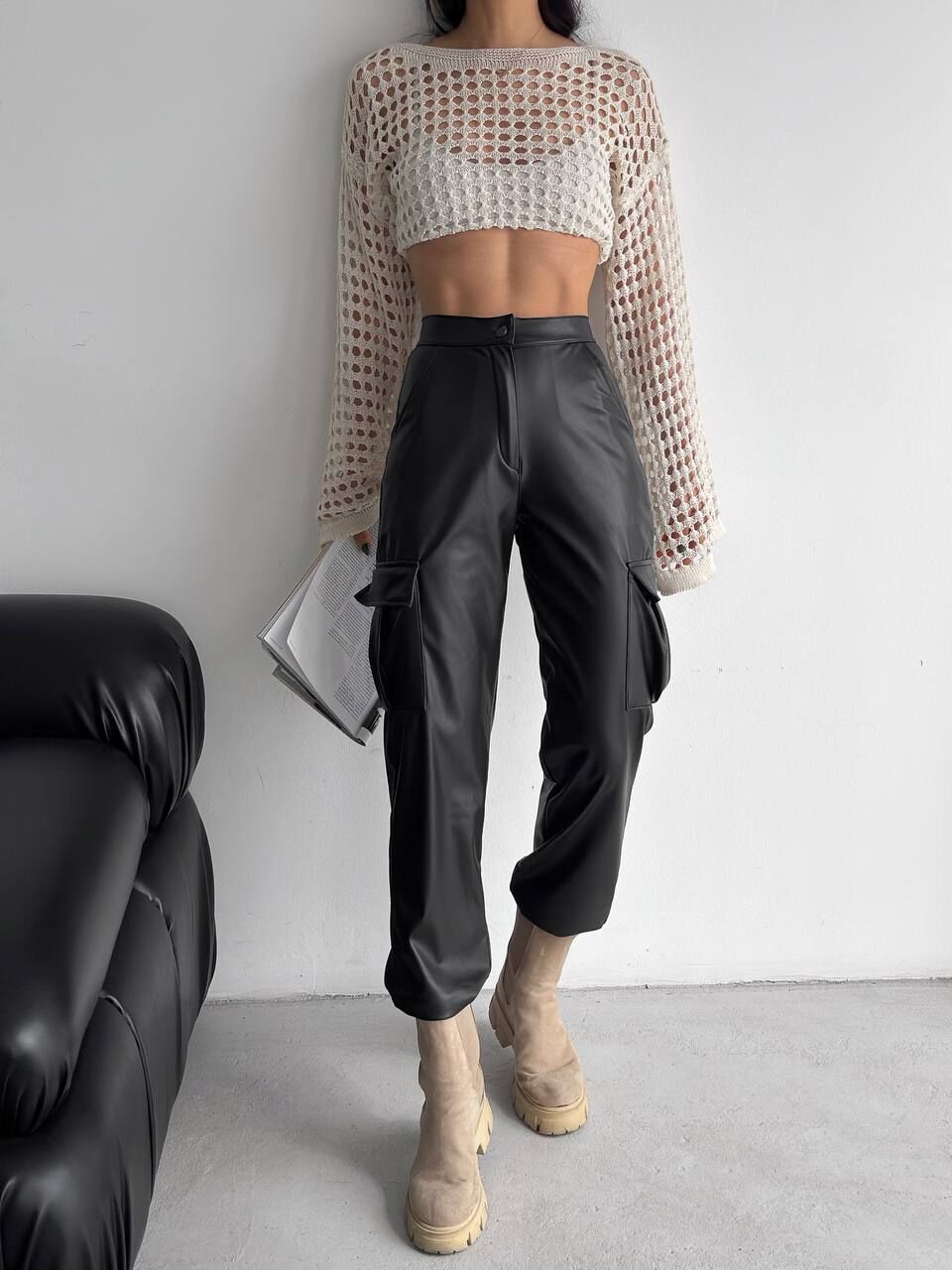 - Yandan kargo cepli deri pantolon modelidir.