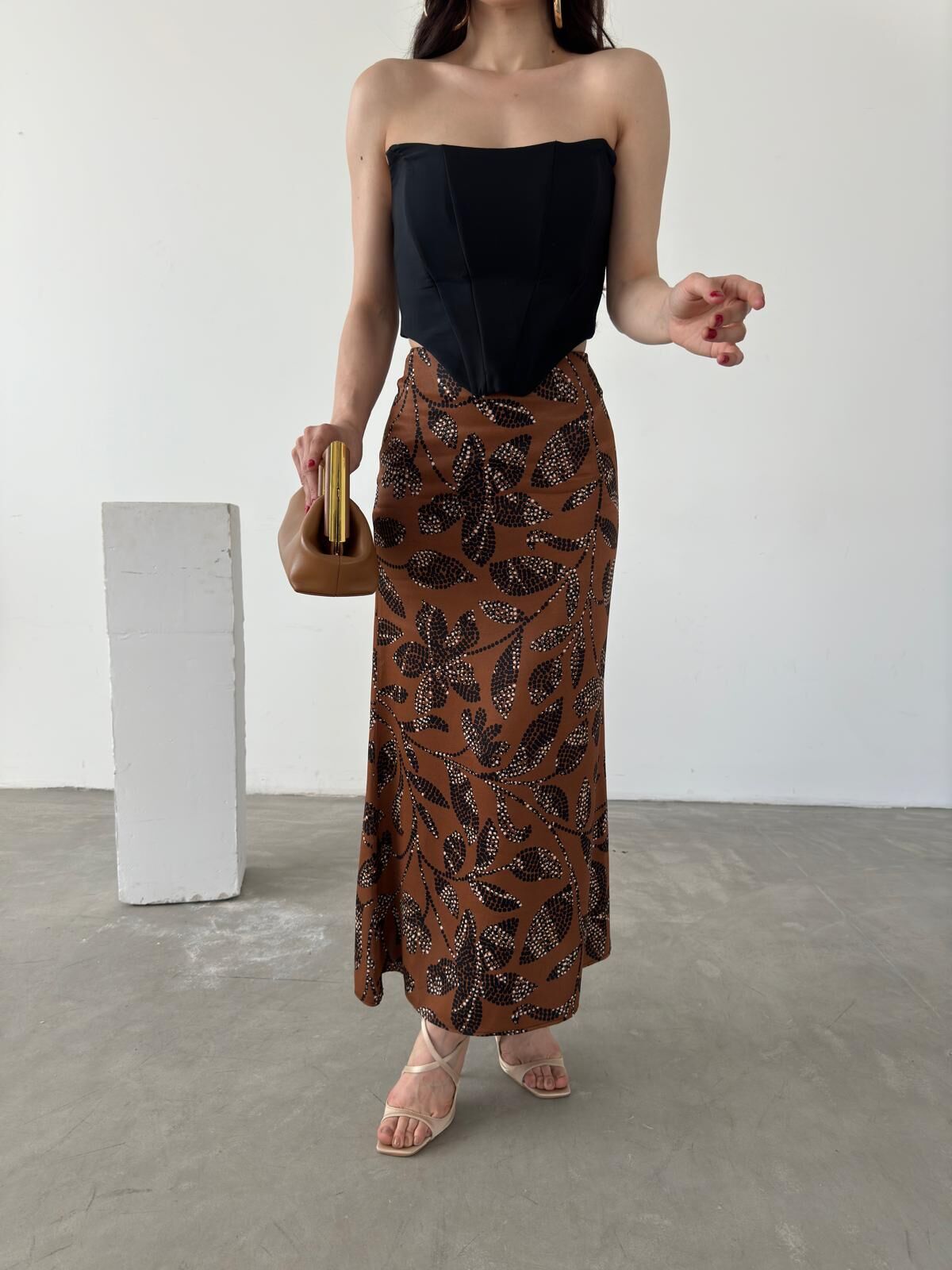 Kadın Uzun Desenli Saten Etek 3XL - KOD-13