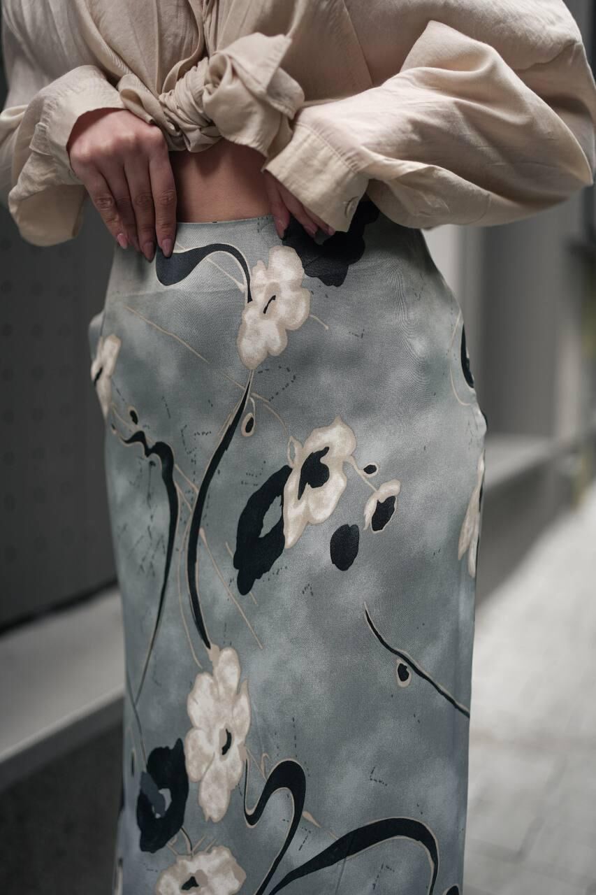 Kadın Uzun Desenli Saten Etek 3XL - KOD-19