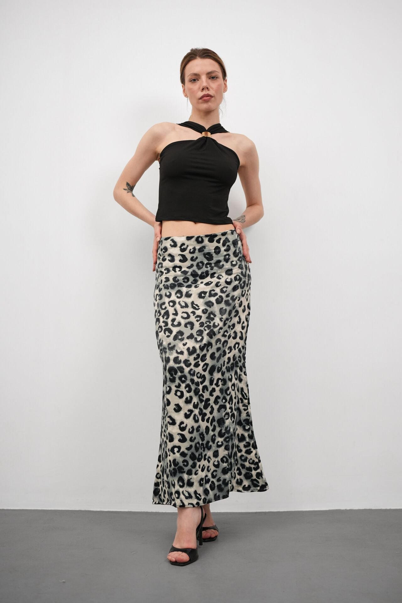 Kadın Uzun Desenli Saten Etek 3XL - KOD-7 LEOPAR