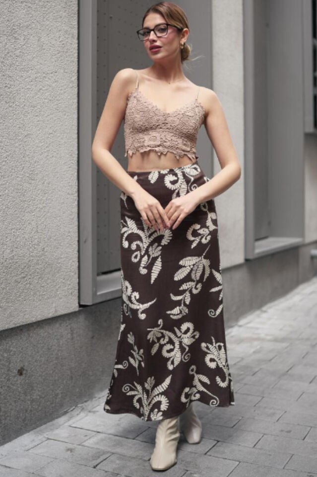 Winmoda kadın saten etek modeli, zarif dokusu ve desenli tasarımıyla stilinize feminen bir dokunuş kazandırır. Akıcı saten kumaşı sayesinde hem zarif hem de rahat bir kullanım sunar. Leopar, çiçek, yaprak ve batik desen seçenekleriyle tarzınıza dinamizm katar. Uzun etek formu, bacak boyunu optik olarak uzatırken vücut hatlarını estetik biçimde öne çıkarır. Günlük kombinlerden ofis stiline, özel davetlerden şehir şıklığına kadar her ortamda şık bir duruş sağlar. Winmoda kalitesiyle modern, özgün ve zamansız bir görünüm için mükemmel bir tercihtir.