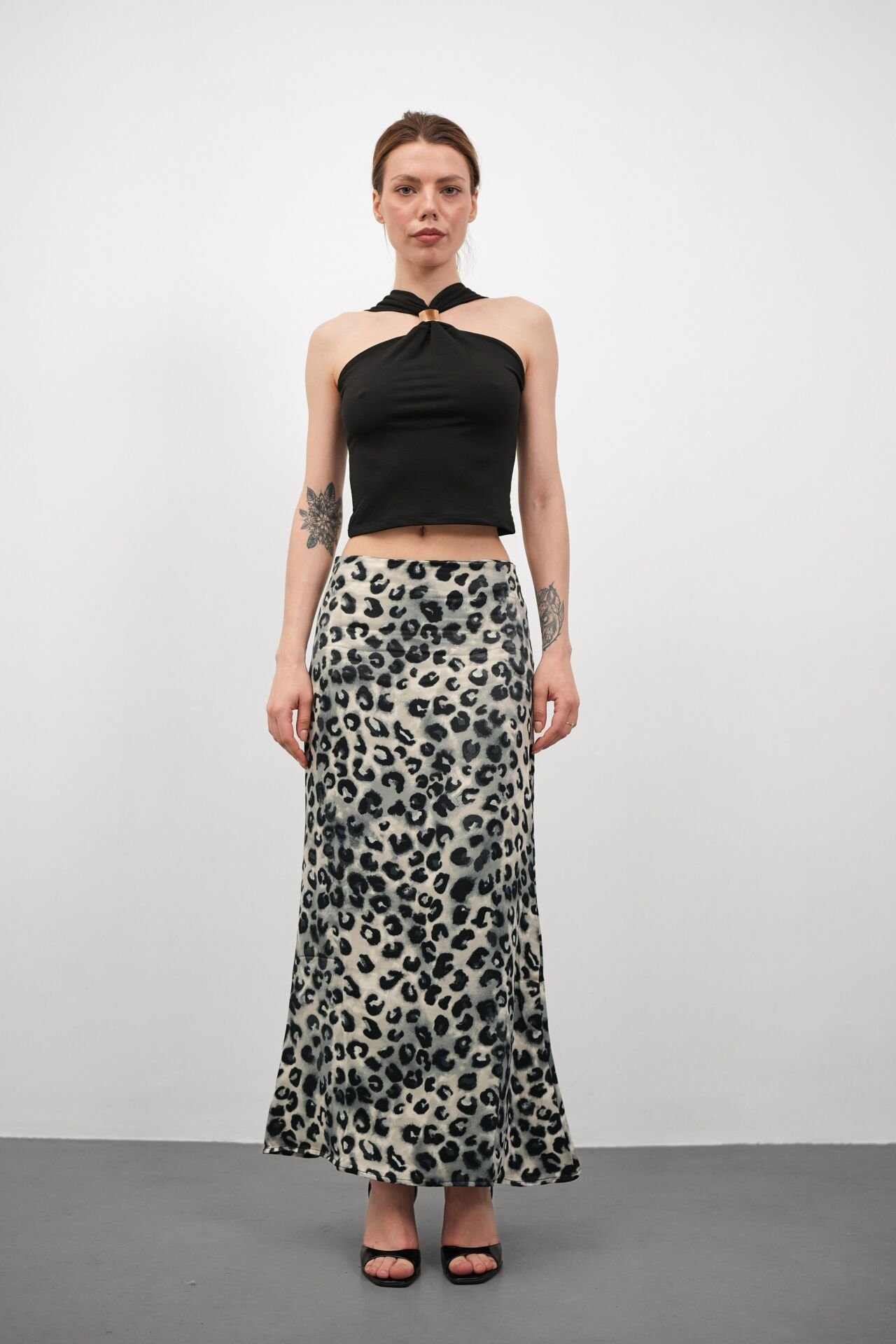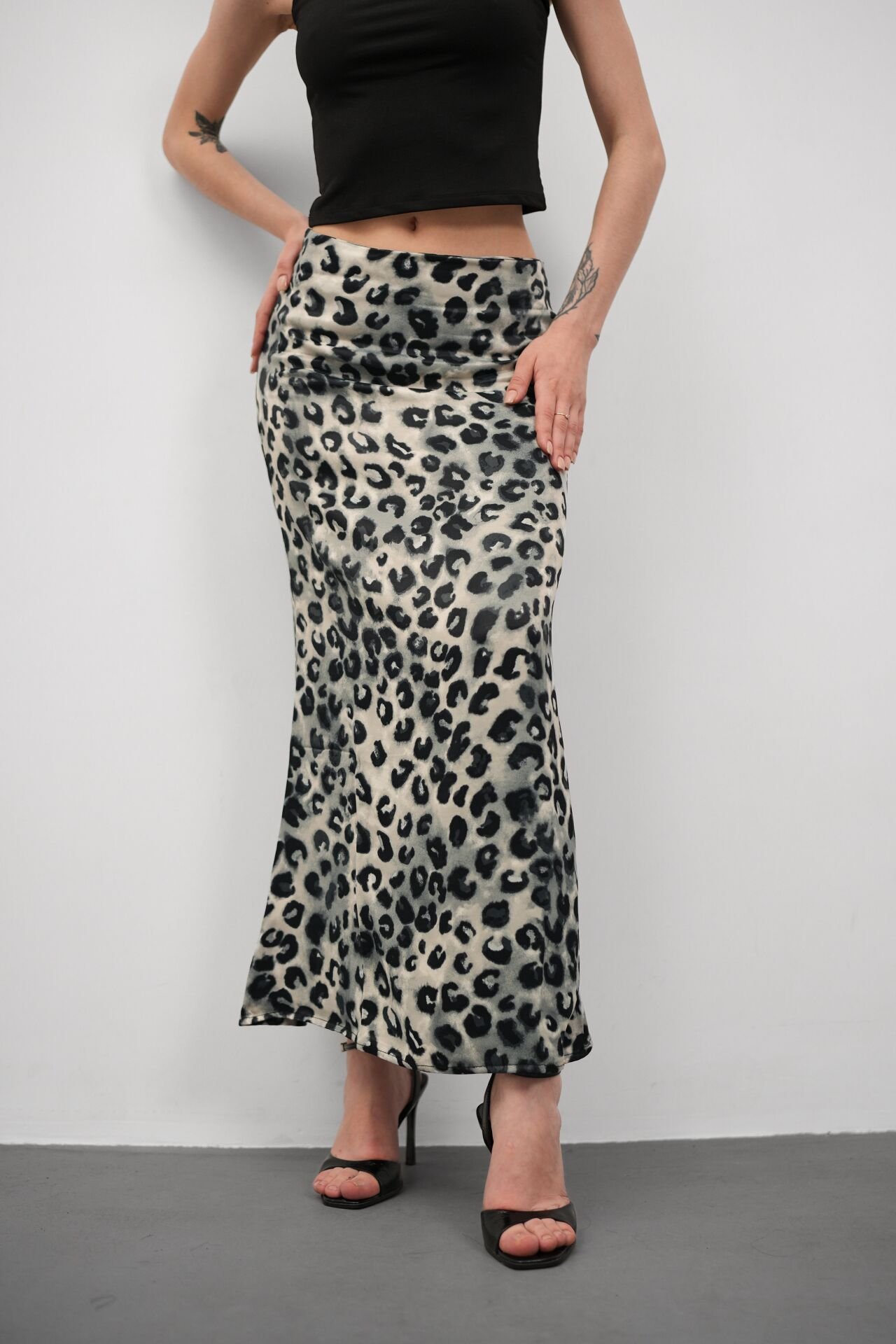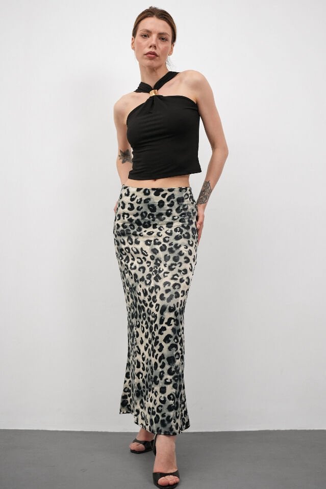 Kadın Uzun Desenli Saten Etek L - KOD-7 LEOPAR