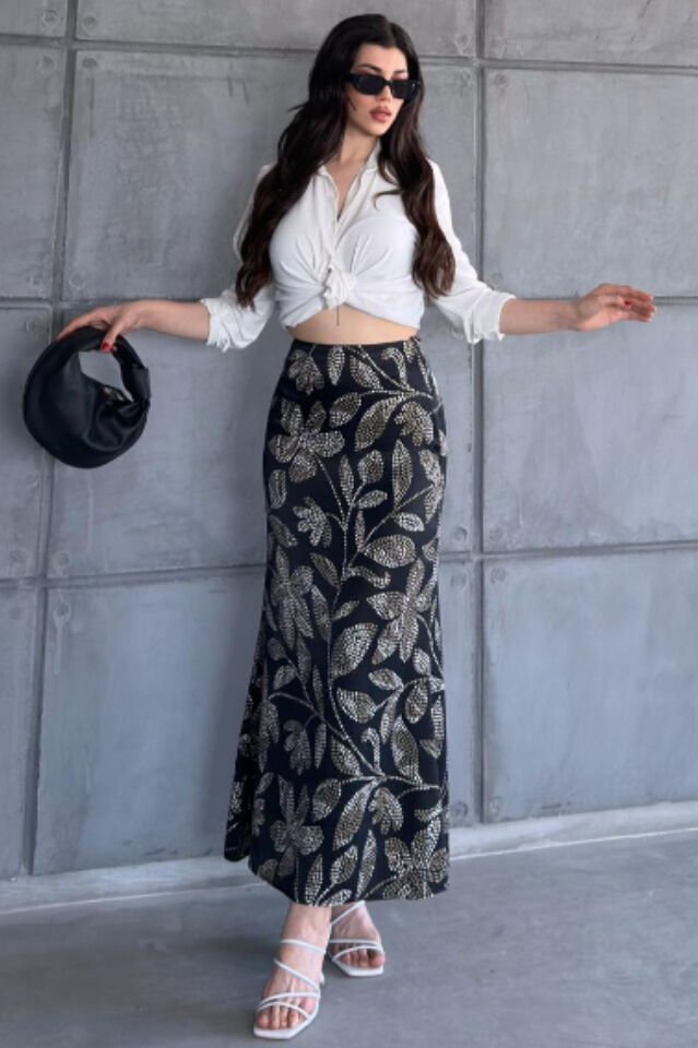 Kadın Uzun Desenli Saten Etek M - KOD-24