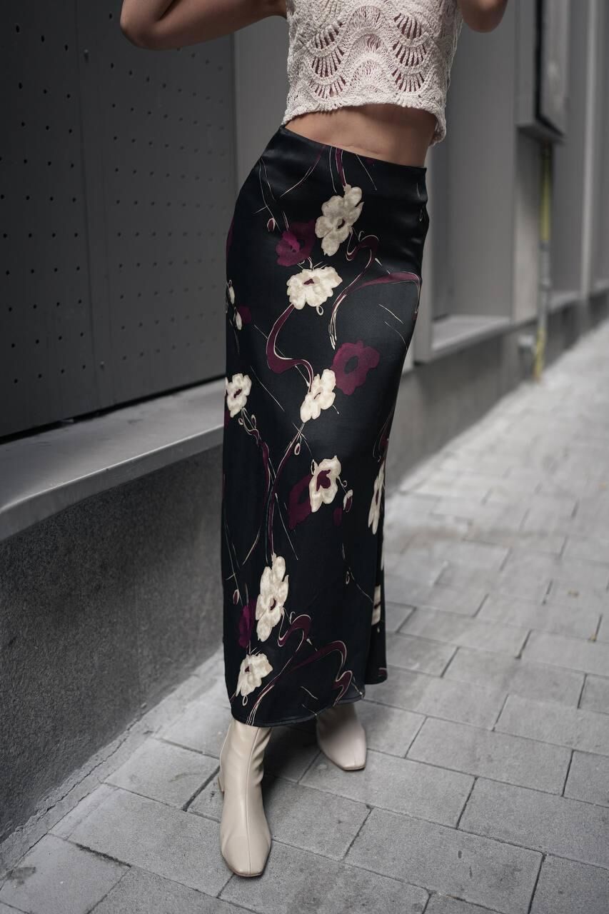 Kadın Uzun Desenli Saten Etek XL - KOD-21