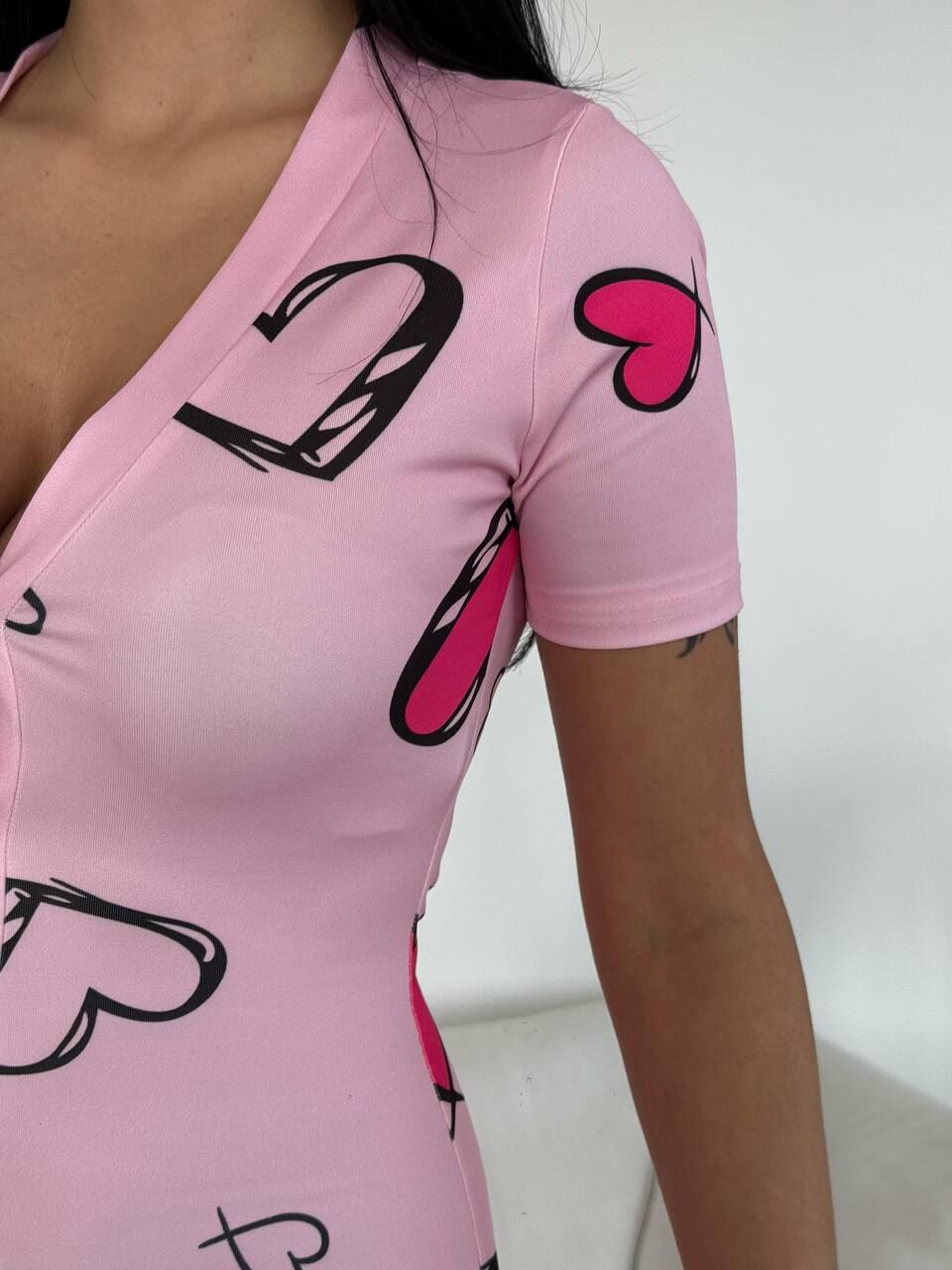 Kadın Desenli Kısa Kol Düğmeli Gecelik Rahat Kullanım Tulum T4