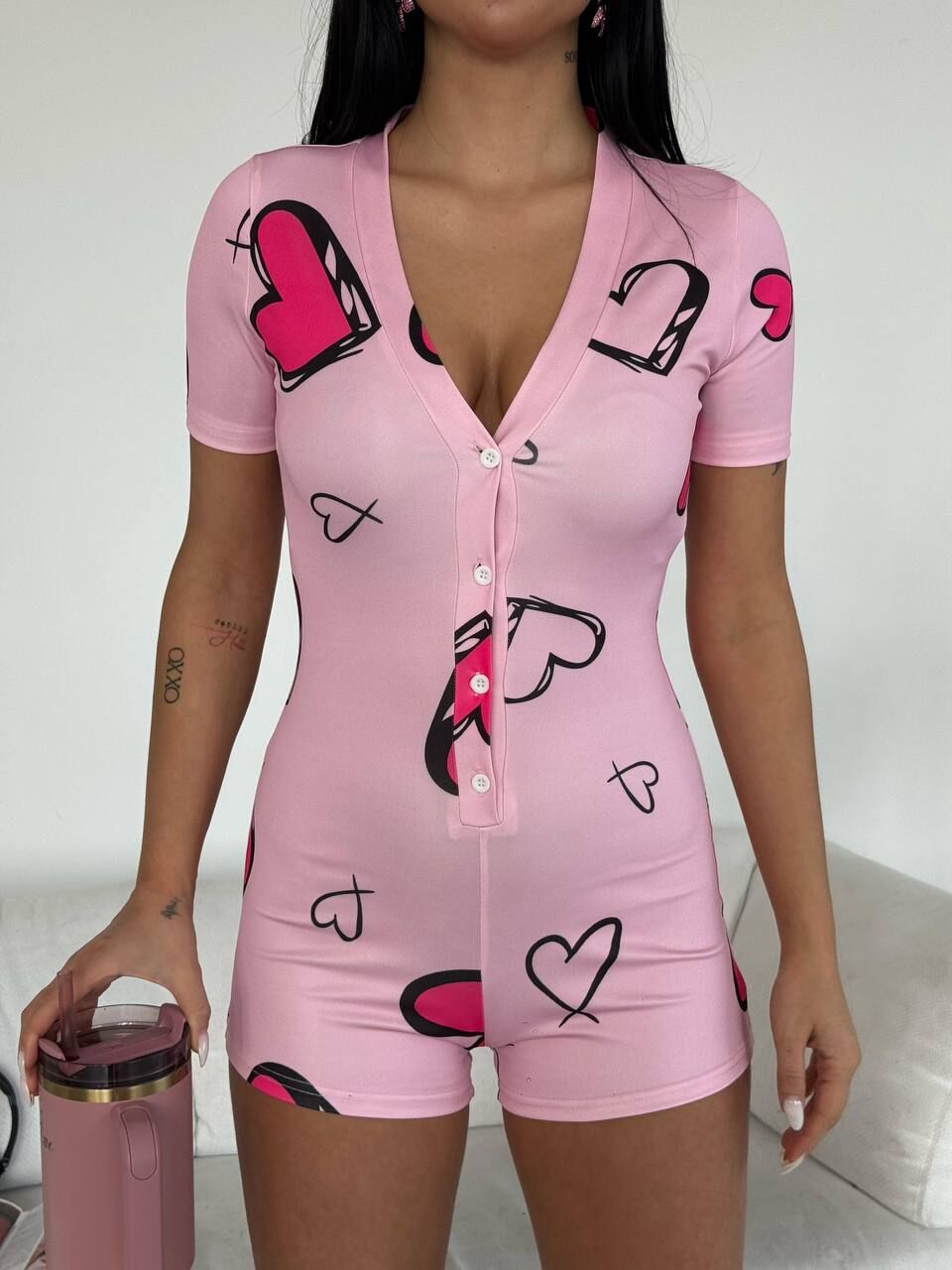 Kalp desenli düğmeli tulum pijama veya çilek desenli düğmeli tulum gecelik, hem evde hem tatilde konforu ve şıklığı aynı anda yaşamak isteyen kadınlar için özel olarak tasarlanmıştır.