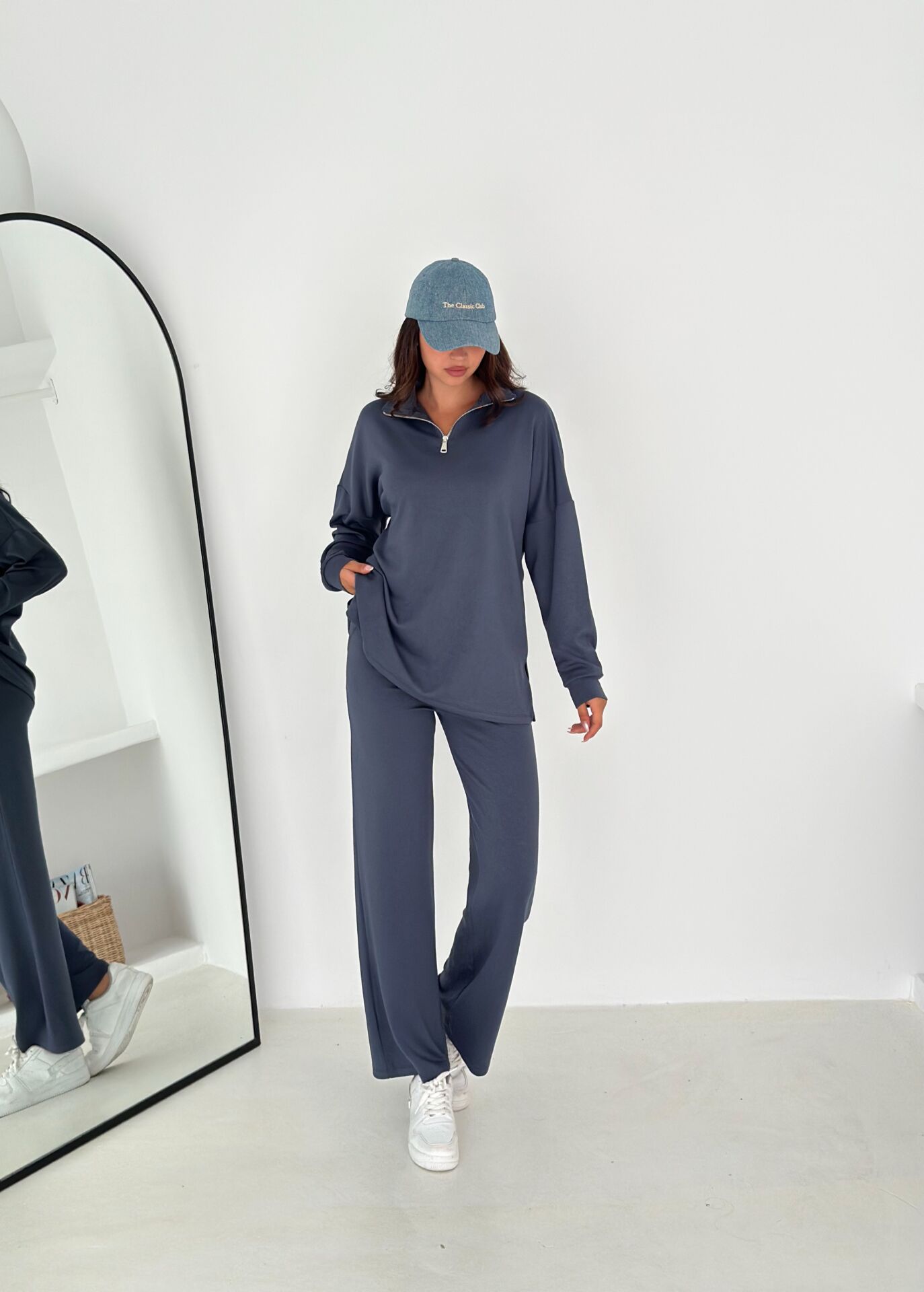 Dik yaka fermuarlı üst ve geniş paça baggy kesim alt parçadan oluşan kadın eşofman takımı, salaş görünümüyle modern ve konforlu bir stil sunar. Modal karışımlı örme kumaşı sayesinde yumuşak, nefes alabilir ve mevsimlik kullanıma son derece uygundur. Yüksek bel kesimi ve çift cepli fonksiyonel tasarımı günlük kullanım için ideal bir rahatlık sağlar. Fermuarlı sweatshirt üst parçası, pratik giyme–çıkarma kolaylığı sunarken lastikli kapama şekli konforu artırır. Relaxed kesimi, hareket özgürlüğü sağlarken geniş paça alt kısmı modern bir siluet oluşturur. Düz desenli sade görünümü hem günlük stil hem de minimal kombinler için ideal hale getirir. %55 modal, %38 polyester ve %7 likra karışımıyla üretilen bu takım dayanıklılık ve konfor arasında mükemmel bir denge kurar. Tesettür giyim uyumlu formuyla şıklığı ve rahatlığı bir arada isteyen kadınlar için özel olarak tasarlanmıştır. Winmoda güvencesiyle sunulan kadın eşofman takımı, dört mevsim kullanılabilir yapısıyla gardırobun vazgeçilmez parçalarından biri olmaya adaydır.