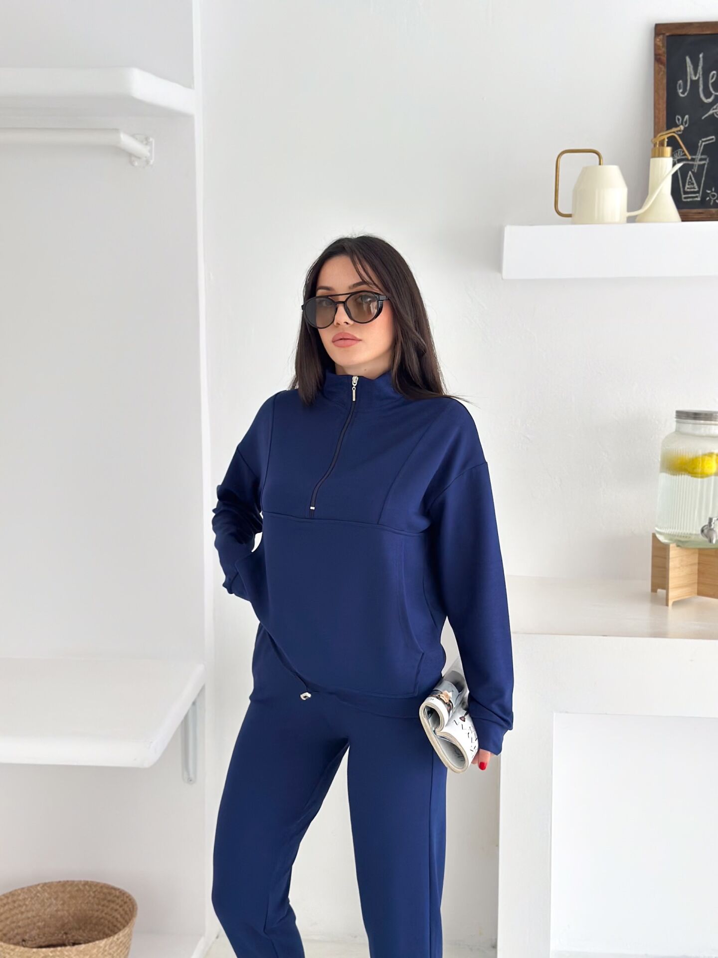 Dik yakalı fermuarlı kadın modal eşofman takımı, hem modern tasarımı hem de sunduğu yüksek konforla günlük kullanıma mükemmel şekilde uyum sağlar. Modal dokulu kumaşı sayesinde yumuşacık bir his verir ve cilde nazikçe dokunur. Alt kısmındaki kıstırma lastikli paça yapısı rahat bir kullanım sunarken, cepli tasarımı fonksiyonelliği artırır. İster salaş ister içe katlanarak kısa şekilde kullanılabilen üst formu, takımı çok yönlü bir hale getirir. Tam beden ölçülerinde üretilmiş olup kendi bedeninizi güvenle tercih edebilirsiniz. Parçalı dikiş detayları modele sportif-şık bir hava katarken, mevsimlik kalınlıktaki örme modal kumaş dayanıklılığı ve konforu bir arada sunar. Türkiye’de üretilen bu takım, Winmoda güvencesiyle sunulmakta olup hem günlük kullanım hem de modern sokak modası için ideal bir seçimdir.