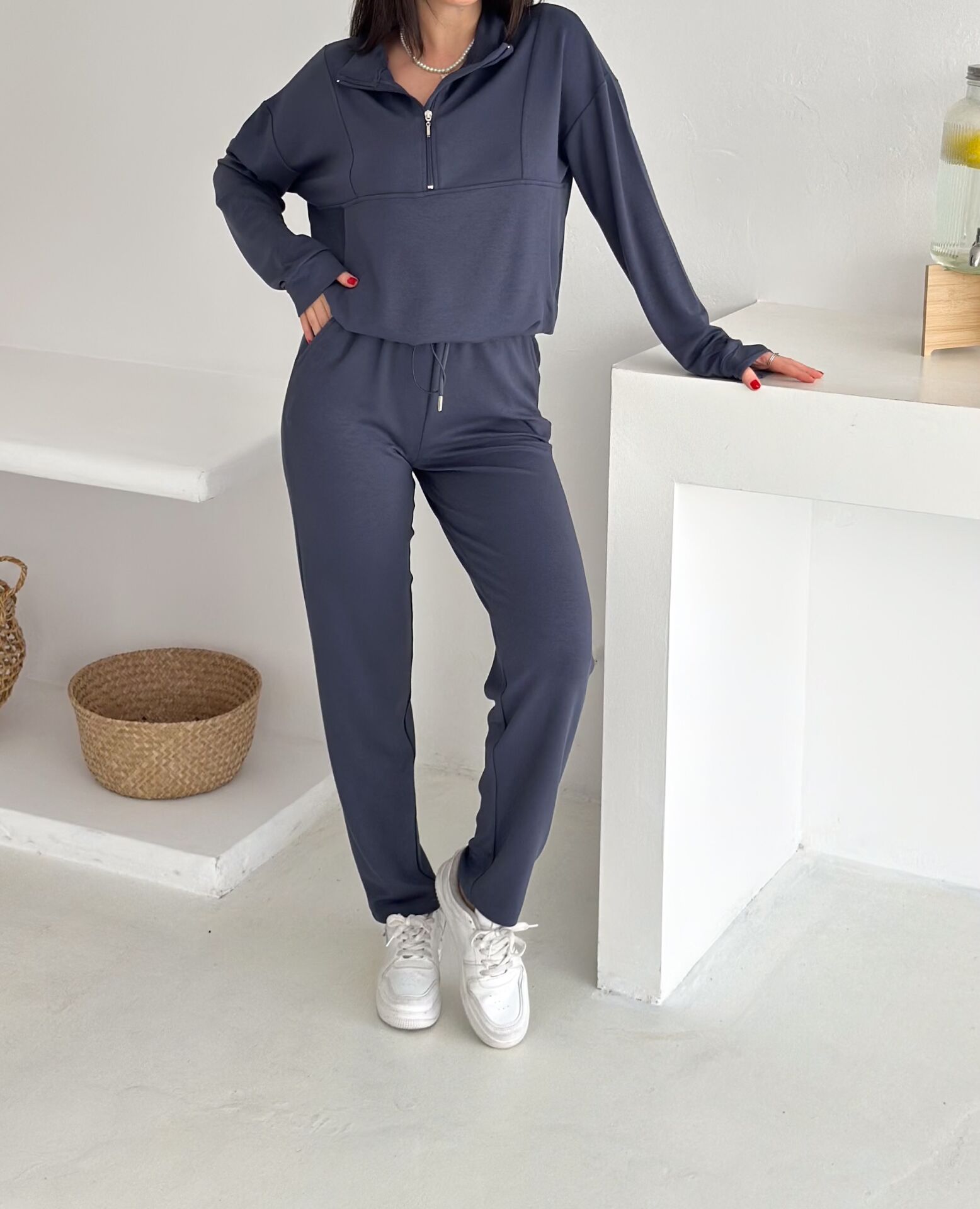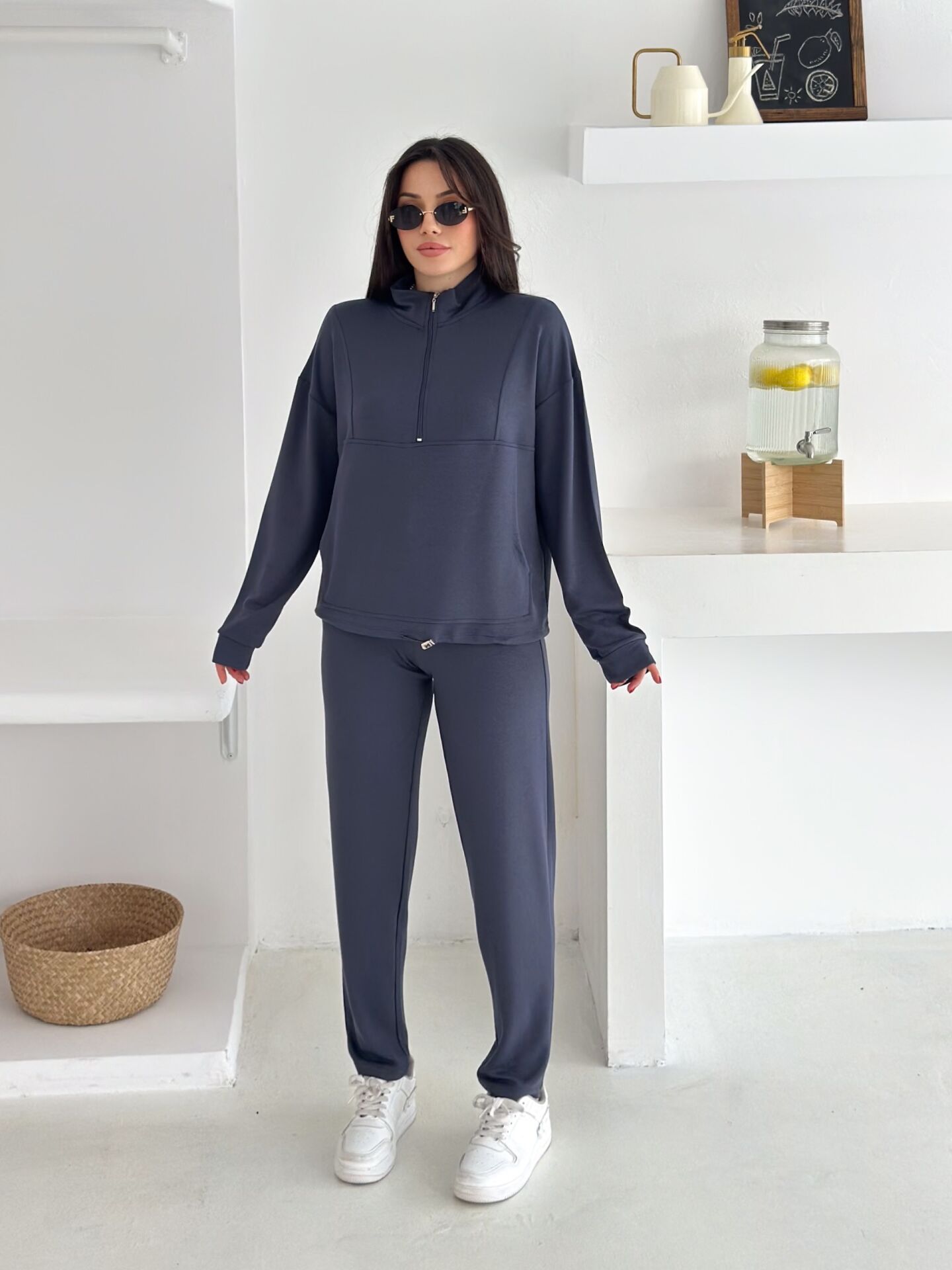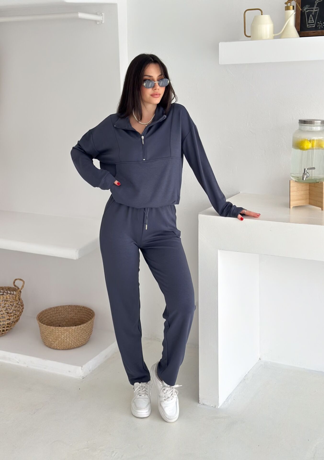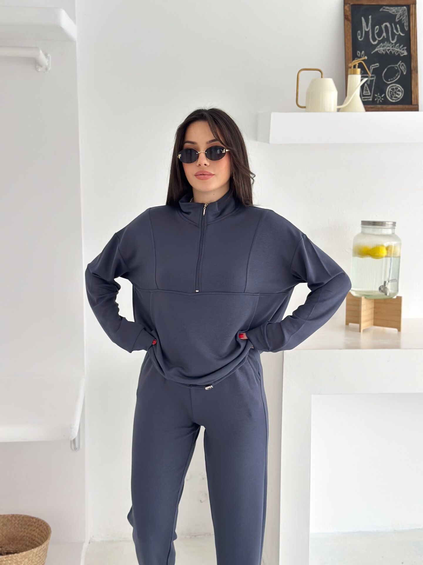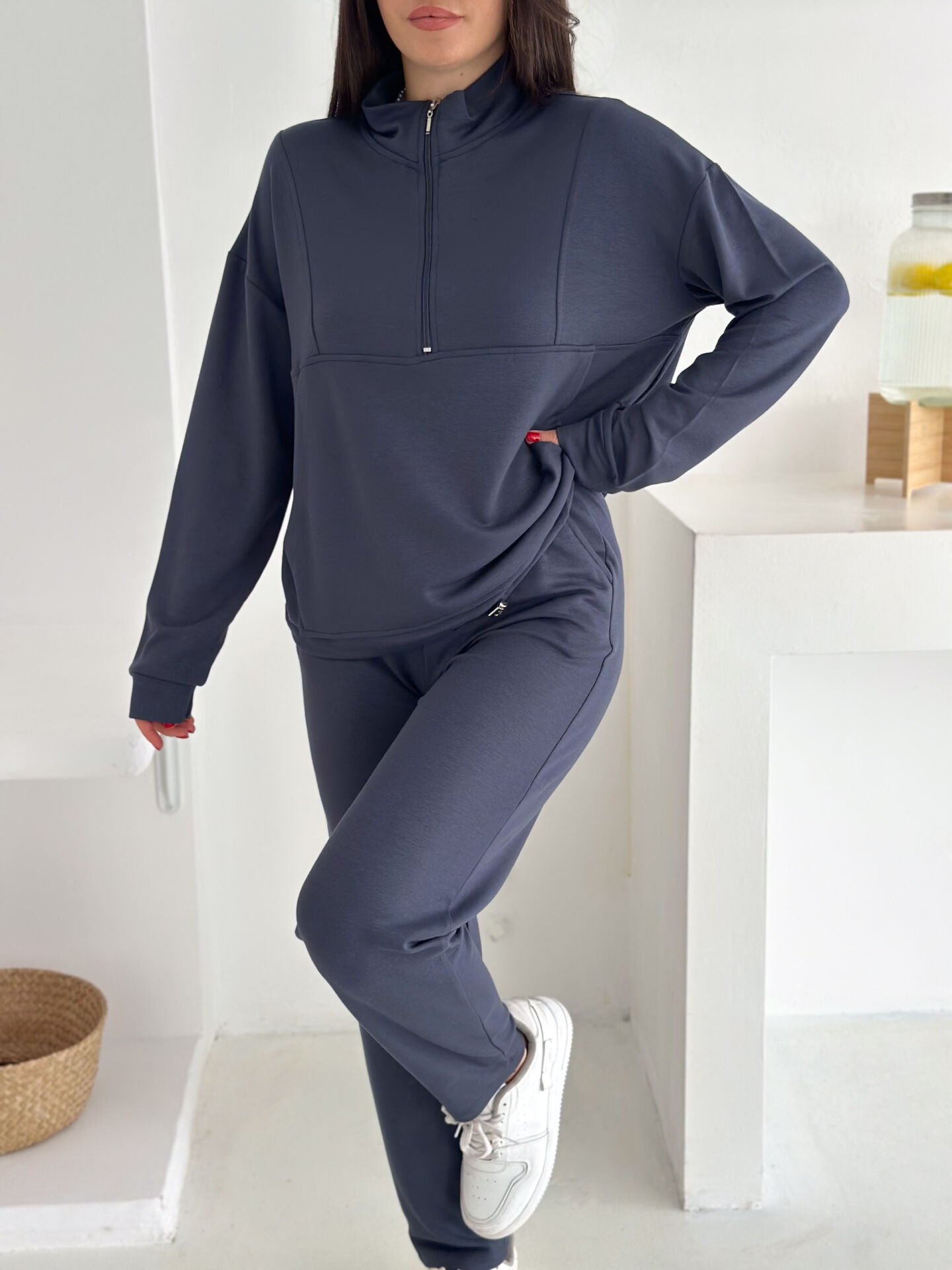 Dik yakalı fermuarlı kadın modal eşofman takımı, hem modern tasarımı hem de sunduğu yüksek konforla günlük kullanıma mükemmel şekilde uyum sağlar. Modal dokulu kumaşı sayesinde yumuşacık bir his verir ve cilde nazikçe dokunur. Alt kısmındaki kıstırma lastikli paça yapısı rahat bir kullanım sunarken, cepli tasarımı fonksiyonelliği artırır. İster salaş ister içe katlanarak kısa şekilde kullanılabilen üst formu, takımı çok yönlü bir hale getirir. Tam beden ölçülerinde üretilmiş olup kendi bedeninizi güvenle tercih edebilirsiniz. Parçalı dikiş detayları modele sportif-şık bir hava katarken, mevsimlik kalınlıktaki örme modal kumaş dayanıklılığı ve konforu bir arada sunar. Türkiye’de üretilen bu takım, Winmoda güvencesiyle sunulmakta olup hem günlük kullanım hem de modern sokak modası için ideal bir seçimdir.