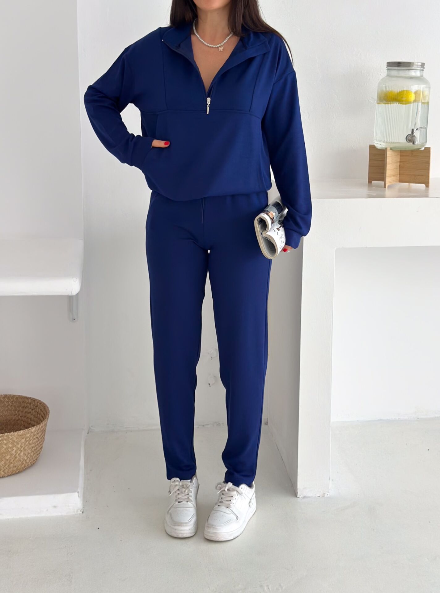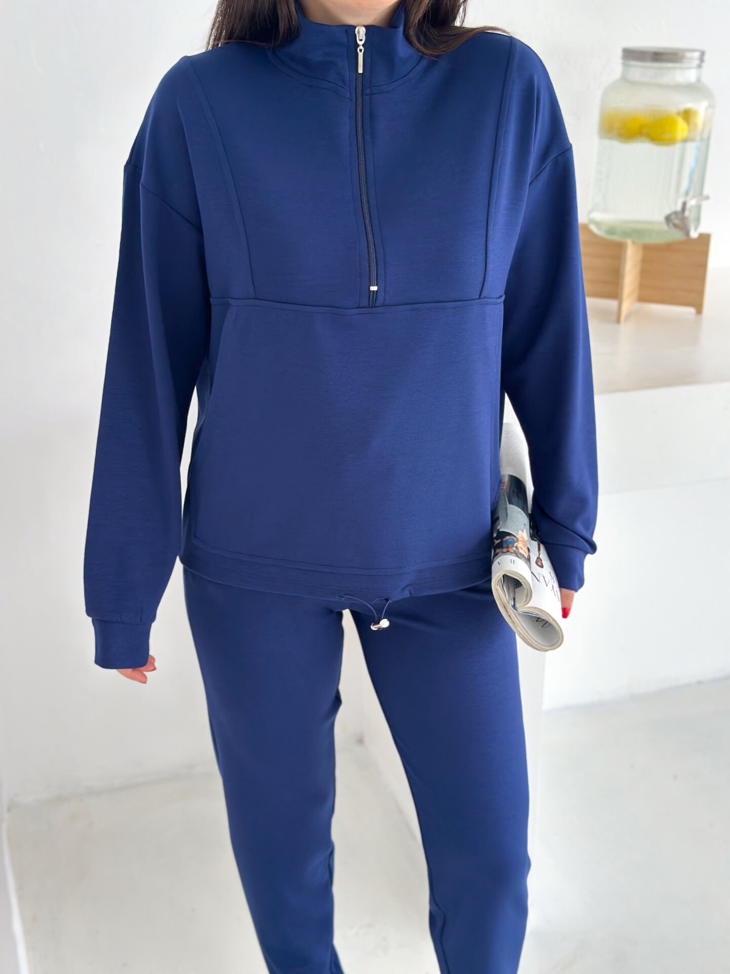 Kadın Dik Yaka ve Paçalı Modal Kumaş Cepli Eşofman Takımı 2561 LACİVERT - S