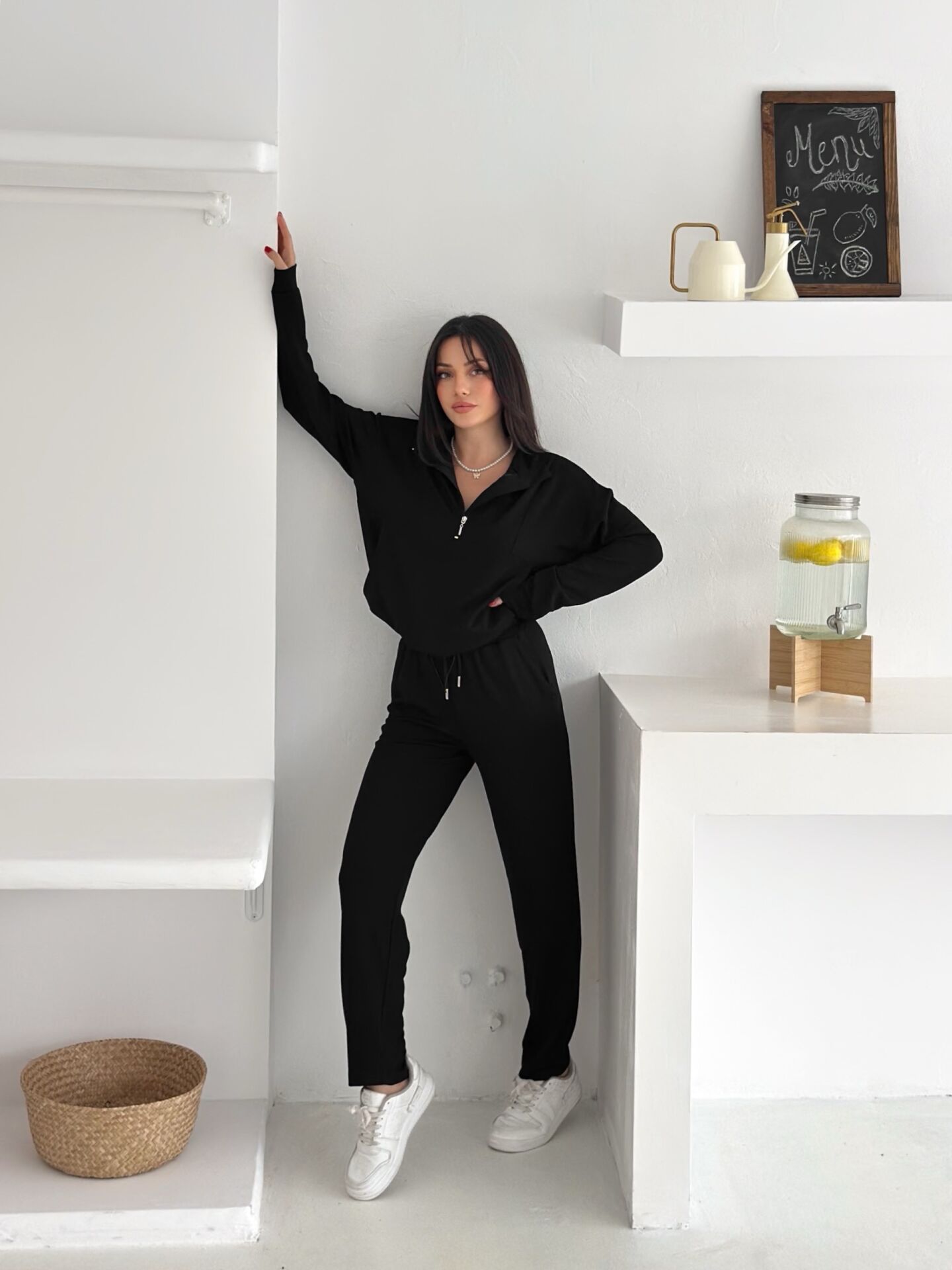 Kadın Dik Yaka ve Paçalı Modal Kumaş Cepli Eşofman Takımı 2561 SİYAH - S