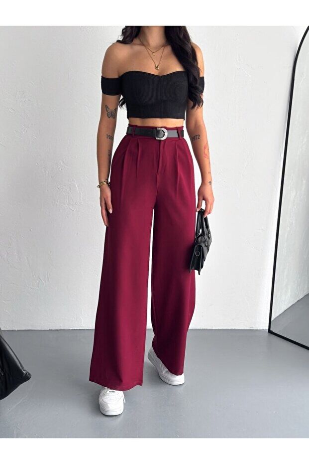 Kadın Double Kemerli ve Ön Pileli Kumaş Pantolon 2459