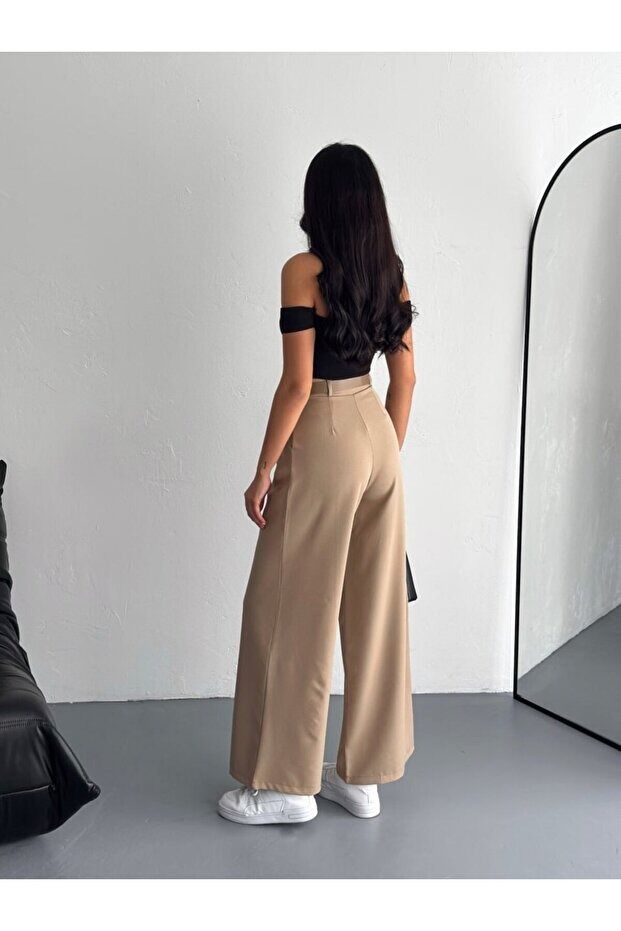 Kadın Double Kemerli ve Ön Pileli Kumaş Pantolon 2459 XL - BEJ