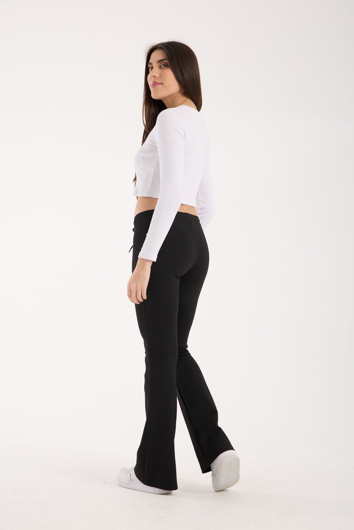 Düşük bel İspanyol paça pantolon modeli, modern görünümü ve şık duruşuyla günlük kullanımlar için ideal bir tasarıma sahiptir. Kemer bölgesinde bulunan bağlama detaylı kordon, pantolonun belde daha sıkı durmasını sağlar ve yarım beden daraltma etkisi sunar. Oturup kalkarken ya da eğilirken belden kayma veya düşme yapmaz, bu da ürünü gün boyu konforlu hale getirir. Kumaş yapısı sıkılaştırıcı elastan formundadır ve vücudu zarifçe toparlar. Tüm sezonlara uygun olan bu pantolon, en güncel kalıp teknolojisi ile üretilmiştir ve Winmoda güvencesiyle satışa sunulmuştur. İspanyol paça tasarımı, hem bacak boyunu uzun gösterir hem de modern bir siluet kazandırır. Düz desen ve cepsiz minimal hatlar sayesinde hem günlük hem şık kombinlerde rahatlıkla kullanılabilir. Regular siluet + esnek kumaş yapısı hareket özgürlüğü sağlar. Bağcıklı kemeri belinizi zarifçe sararak feminen bir dokunuş ekler. Casual/günlük koleksiyon parçası olarak hafif, konforlu ve modern bir görünüm sunar.