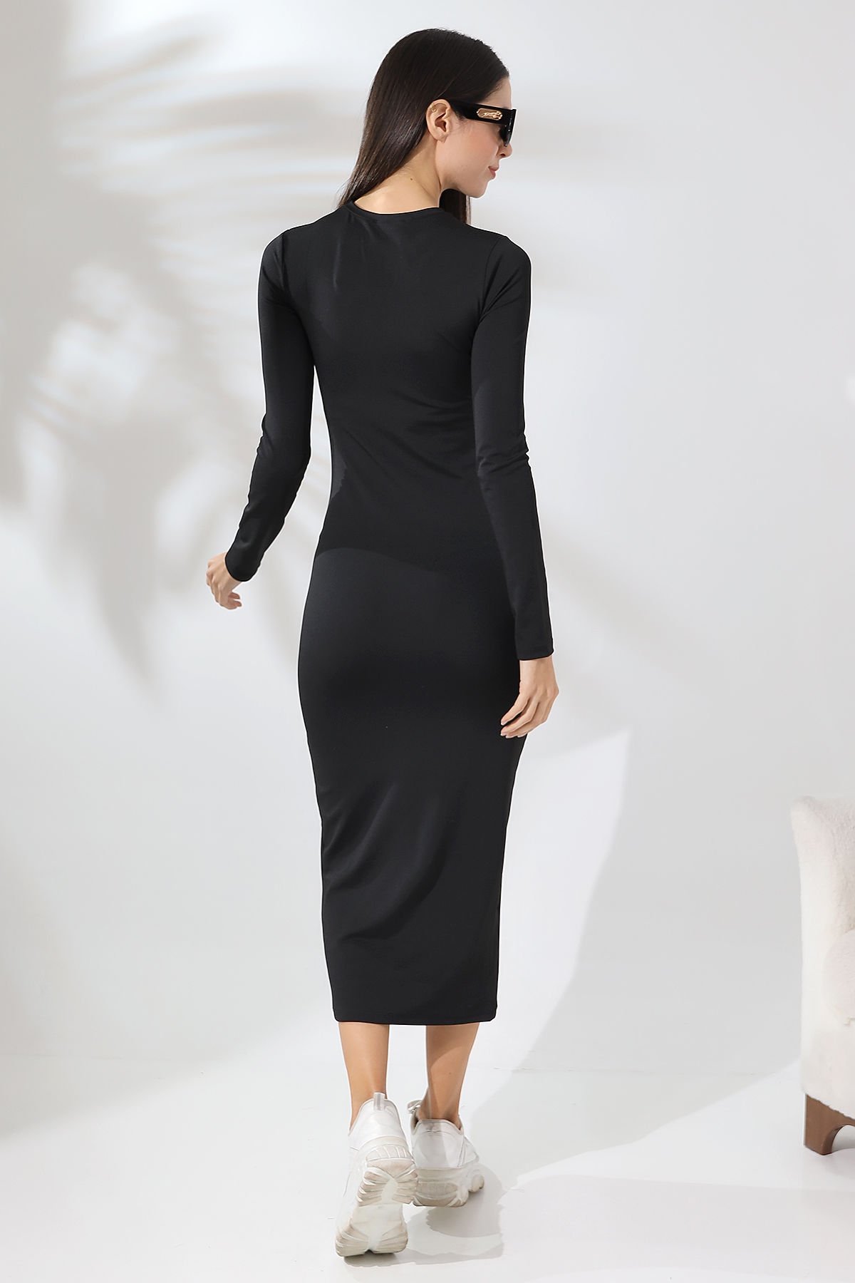 Minimal aksesuarlar ve topuklu ayakkabılarla kombinlendiğinde ofis stiline, şık çanta ve ayakkabılarla gece davetlerine uyum sağlar. Kadın Siyah Renk Kalem Elbise, güçlü, zarif ve net bir stil arayan kadınlar için ideal bir tercihtir.