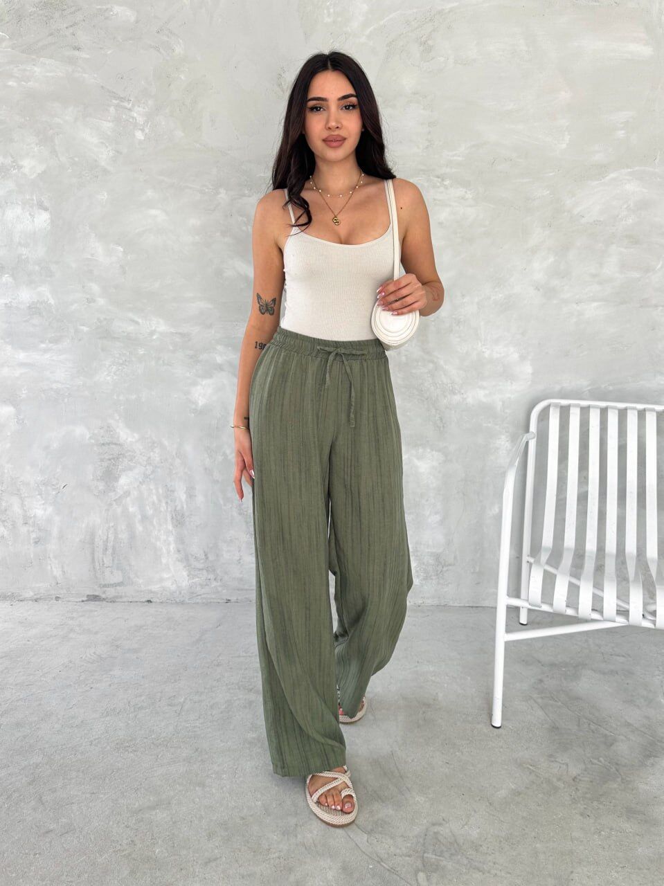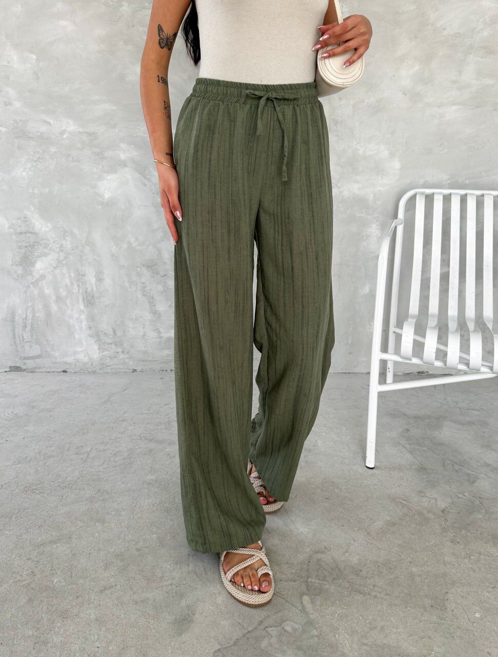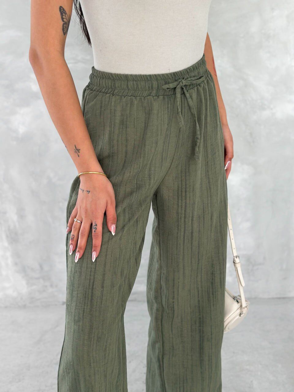Kadın Eskitmen Keten Kumaş Pantolon M - YEŞİL