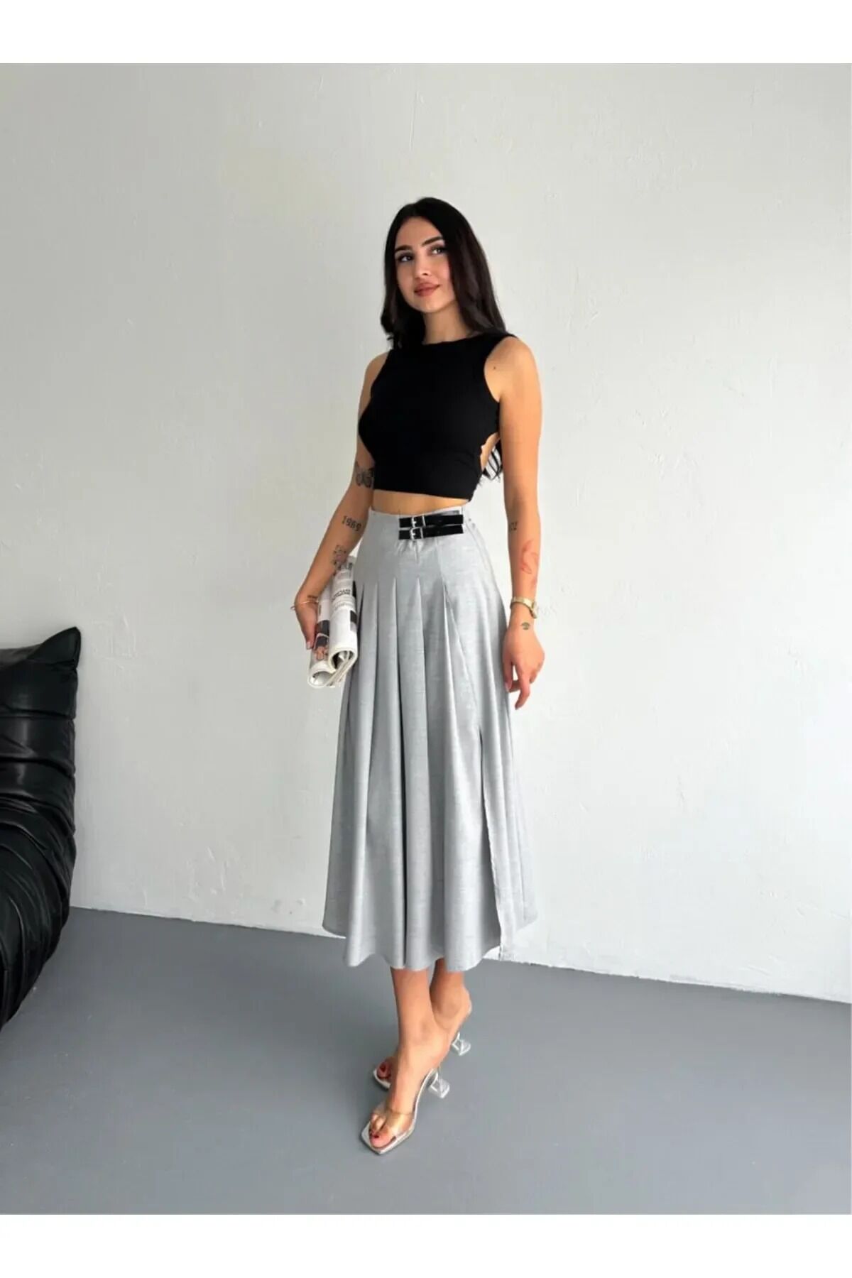 - Zarif tasarımıyla dikkat çeken düz etek, tokalı detayları ve yırtmaçlı yapısıyla modern bir görünüm sunar.; - 30 derecede tek başına yıkama imkanı sayesinde pratik kullanım sağlar; böylece zamandan tasarruf ederken eteğinizi koruyabilirsiniz.; - Kemersiz tasarımı ile rahatlık ve şıklığı bir arada yaşamanızı sağlar; günlük kombinlerinizde kolayca yer bulur.; - Orta kalınlıkta dokusuyla mevsim geçişlerinde ideal konforu sunarken, yarım pat fermuar kapama şekliyle fonksiyonellik kazandırır.; - Sadece bir adet parçası olan bu etek, gardırobunuzda temel bir parça olarak öne çıkar; çeşitli üst giyim seçenekleriyle uyum içinde olur.; - %80 polyester ve %20 pamuk karışımından oluşan materyali dayanıklılığı arttırarak uzun süreli kullanım vaad eder.; - Her sezon tercih edebileceğiniz bu etek, trendleri takip eden stil anlayışınıza hitap eder.; - Çan silueti sayesinde feminen hatları ön plana çıkaran bu model, vücut hatlarınıza mükemmel şekilde oturur.; - Uzun boyu ile bacaklarınızı olduğundan daha uzun göstererek zarif bir duruş sergiler.; - Dokuma kumaşı kaliteli hissiyat verirken aynı zamanda nefes alabilir yapıda olması konforunuzu arttırır.; - Yetişkinler için özel olarak tasarlanmış bu etek, her yaş grubuna uygunluk gösterir; gençten orta yaşa kadar geniş kullanıcı kitlesine hitap eder.; - Türkiye'de üretilmiş olup yerel üretim avantajlarından faydalanmanızı sağlar.; - Kadınların ve kızların beğenisine sunulan bu parça, stil sahibi kadınların gardırobunda yerini almayı hak ediyor.; - İç göstermez özelliğiyle güvenle hareket etmenize olanak tanırken astarsız yapısıyla minimalist yaklaşımı benimseyenler için idealdir.; - Dokuma kumaş tipi sayesinde formunu koruyarak sık kullanımda bile ilk günkü gibi kalır.; - Trend ortamlarda fark yaratmak isteyenler için mükemmel seçimdir; modaya uygunluğuyla göz kamaştırır.; - Düz deseniyle sadelikten yana olanların tercihi olurken çan kalıbıyla retro esintiler taşır.; KEMER DETAYLI YIRTMAÇLI VE TOKALI MAXİ ETEK MODELİ WİNMODA TARAFINDAN SATIŞA SUNULMUŞDUR