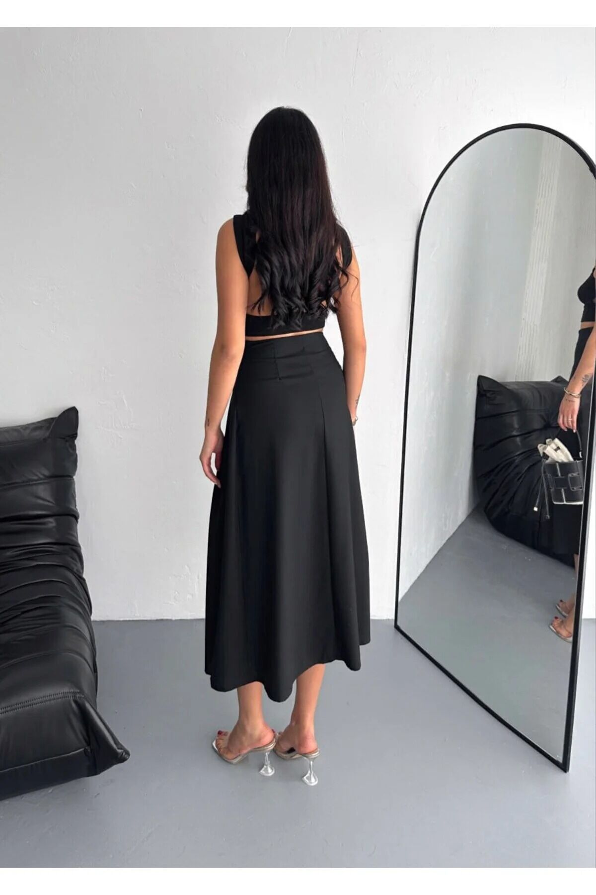 Kemer detaylı, tokalı ve yırtmaçlı maxi etek modeli, modern çizgisi ve zarif görünümüyle dolabınızda mutlaka yer alması gereken trend bir parçadır. Düz dokuma kumaşı sayesinde formunu korur, iç göstermeyen yapısı ile gün boyu konfor ve güven sağlar.