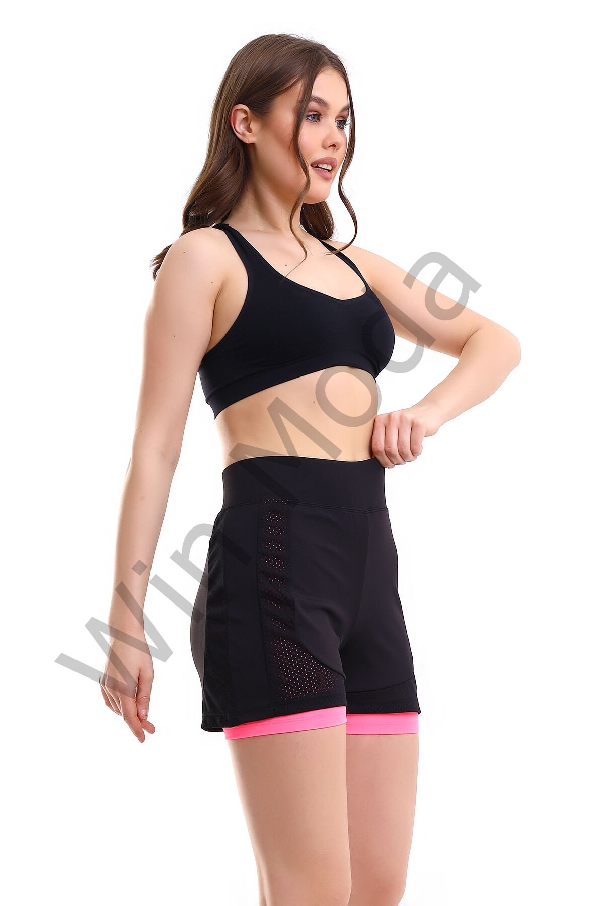 Kadın Fileli Taytlı Şort M - PEMBE