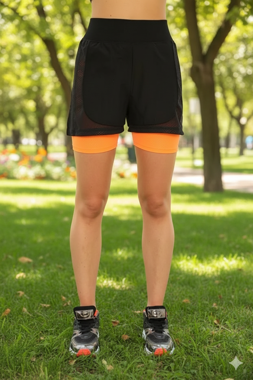 Kadın Fileli Taytlı Şort XS - TURUNCU