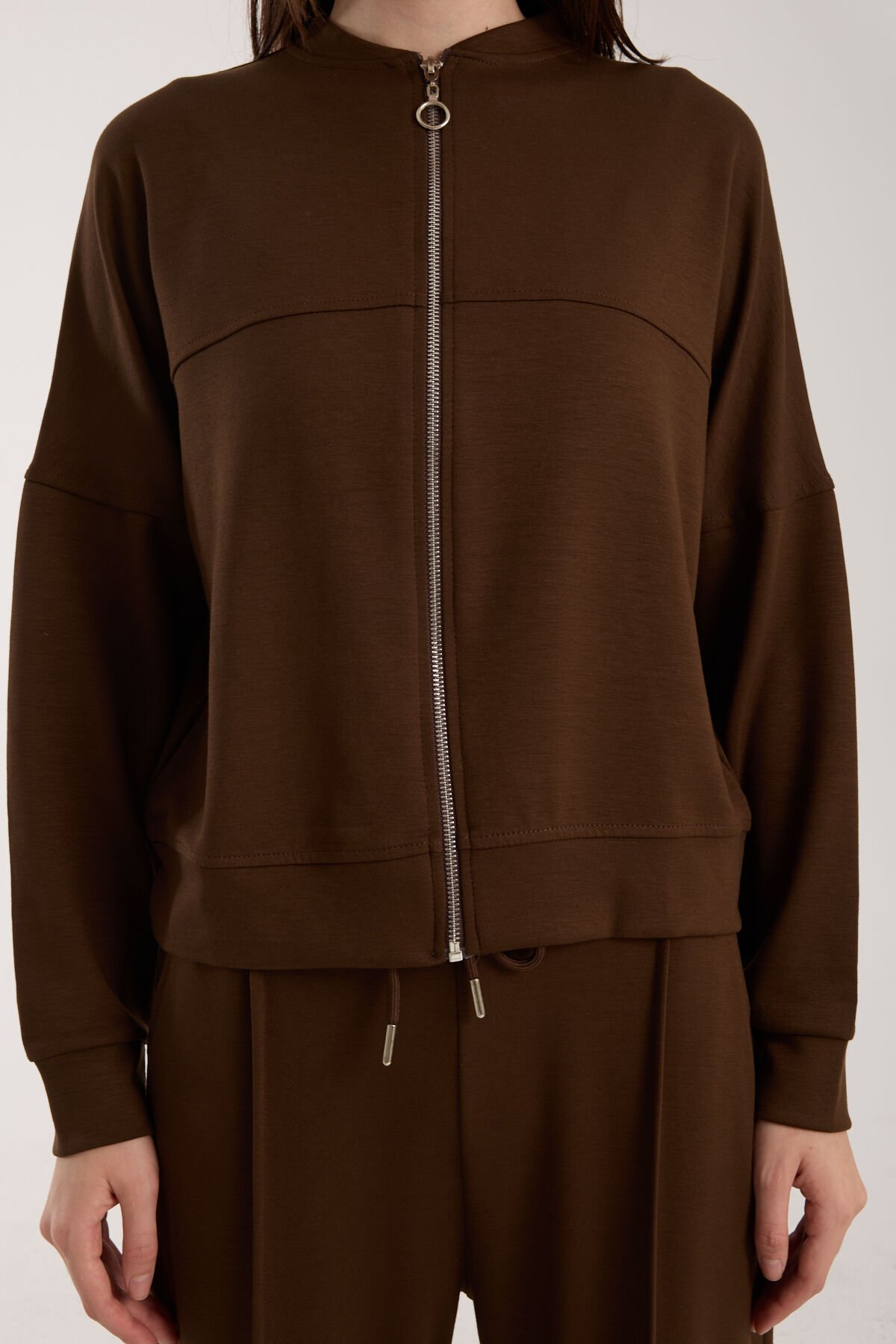 Kadın Hakim Yaka Fermuarlı Modal Kumaş Alt Üst Takım 2371