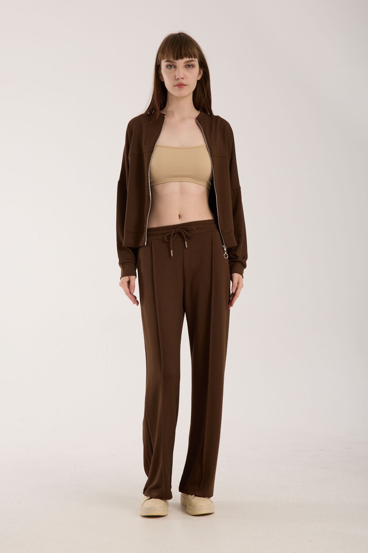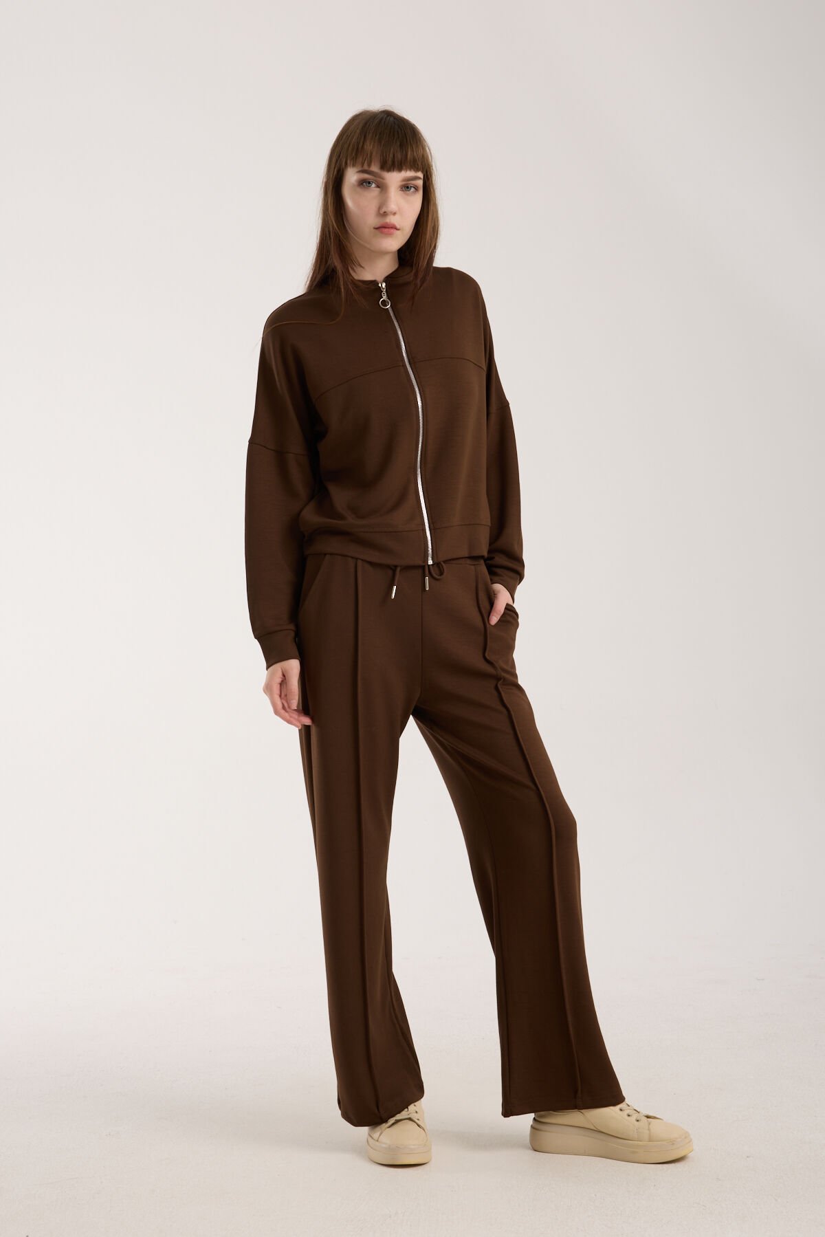 Kadın Hakim Yaka Fermuarlı Modal Kumaş Alt Üst Takım 2371 XL - KAHVERENGİ