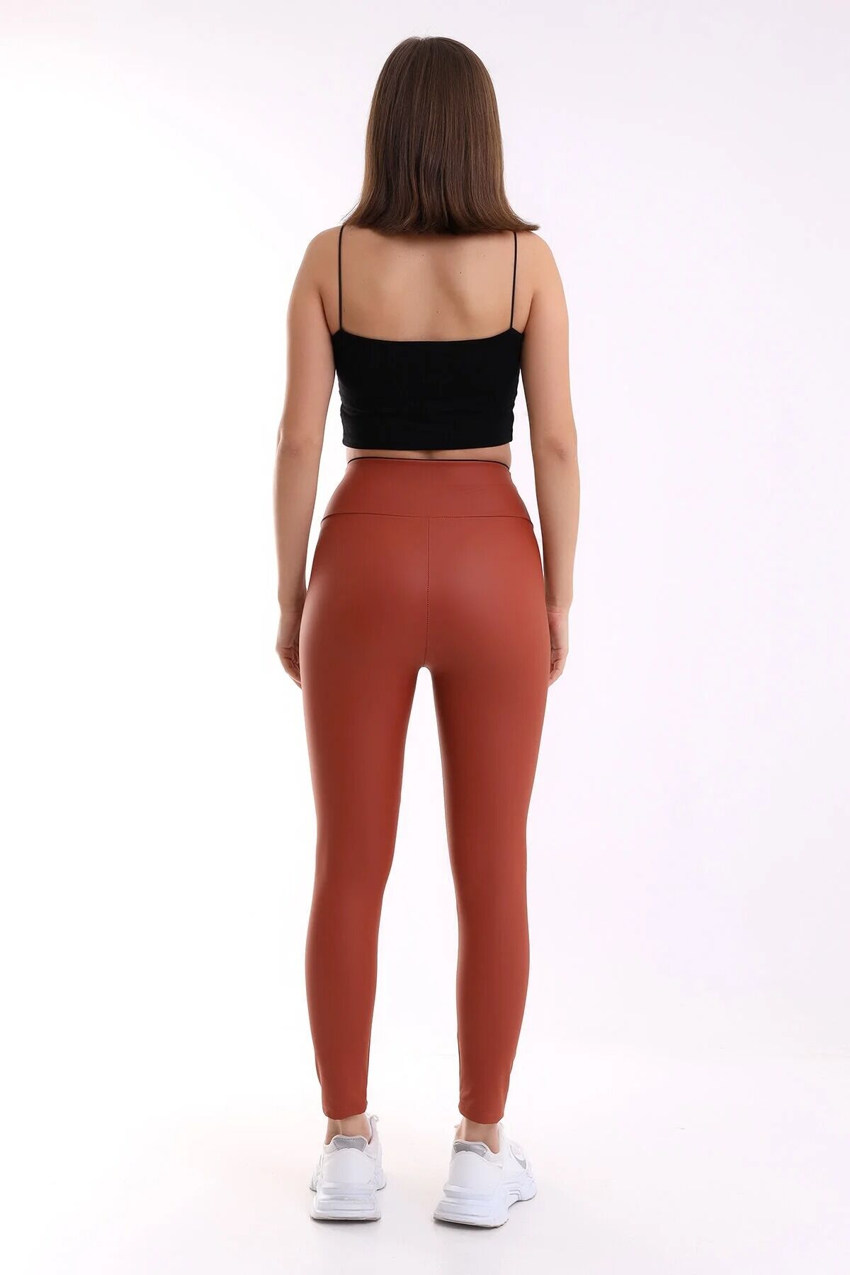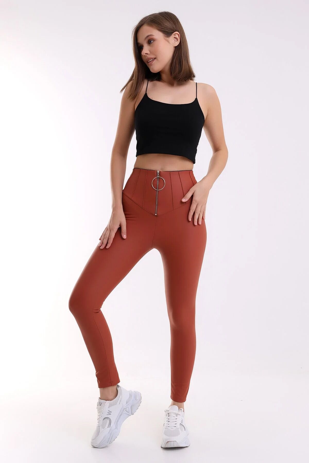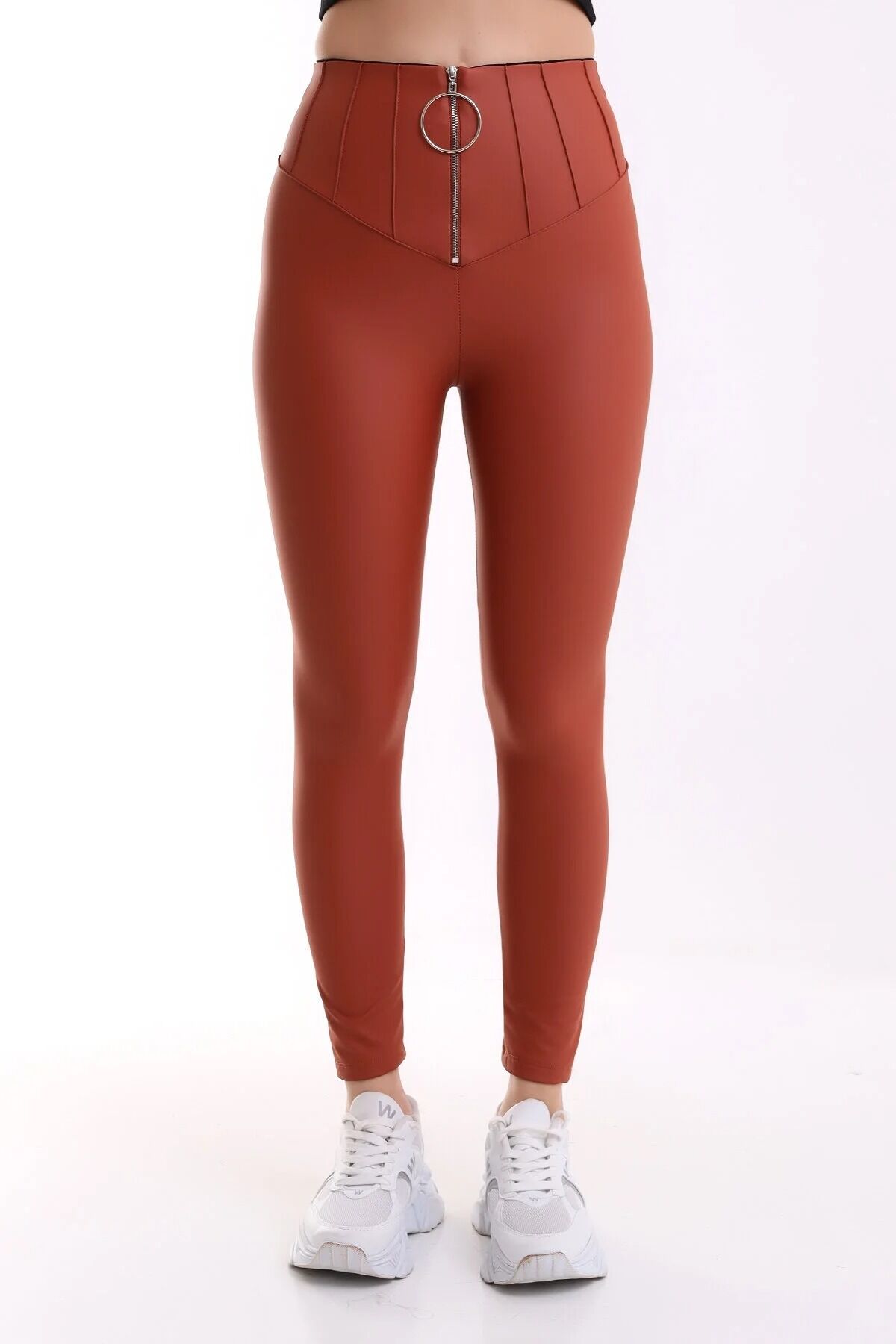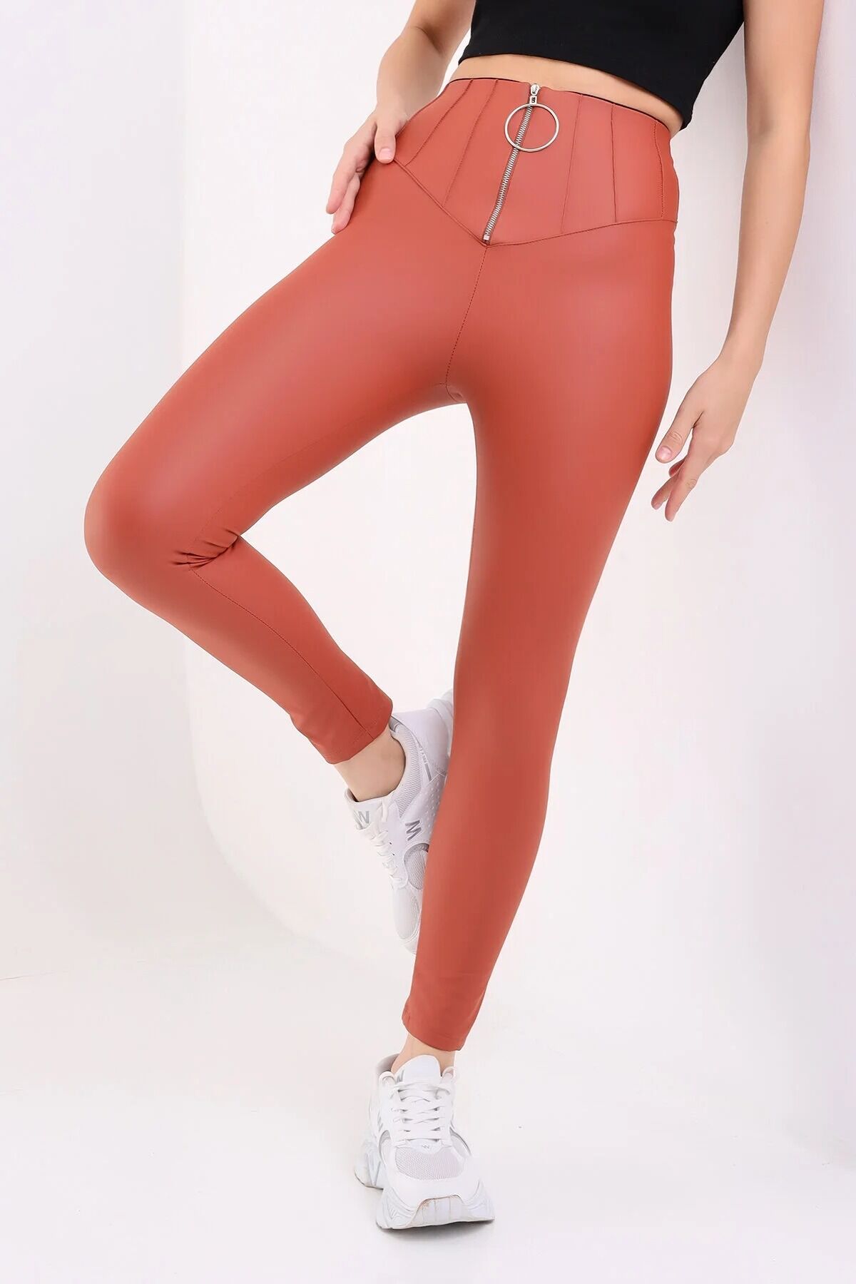 Halka Fermuar Detaylı Mat Suni Deri Tayt 2037 XL - TURUNCU
