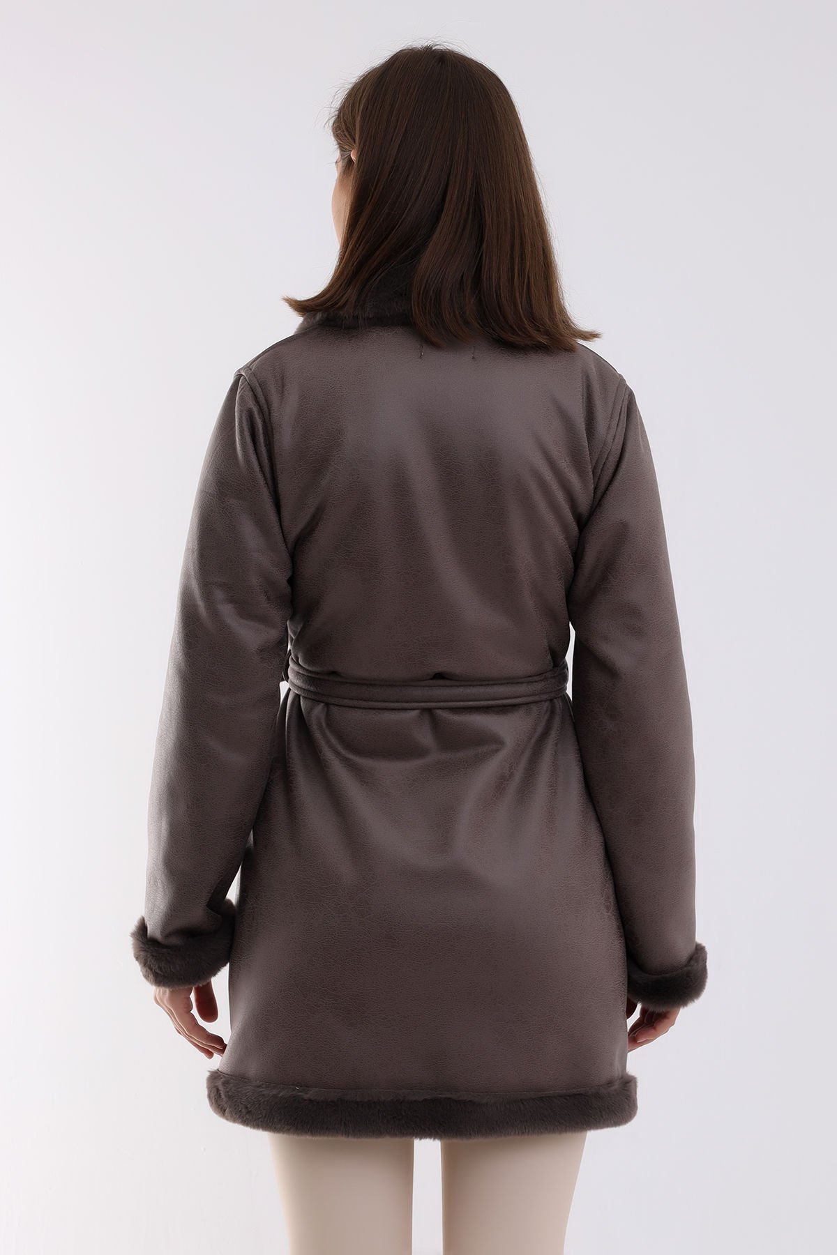 Relaxed kalıbı, klasik yaka formu ve düğmeli kapama şekliyle öne çıkan bu kadın kürklü kaban, kahverengi tonuyla zamansız bir şıklık sunar. Rüzgar geçirmez yapısı ve kalın dokusu kış koşullarına uyum sağlar.