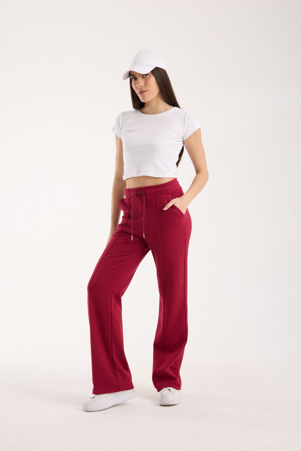 Kadın İçi Şardonlu Önden Dikişli Modal Eşofman Pantolon 2388 M - BORDO