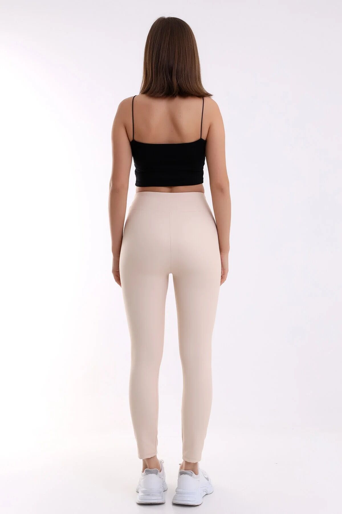 İçi Şardonlu Yüksek Bel Mat Suni Deri Tayt XL - EKRU