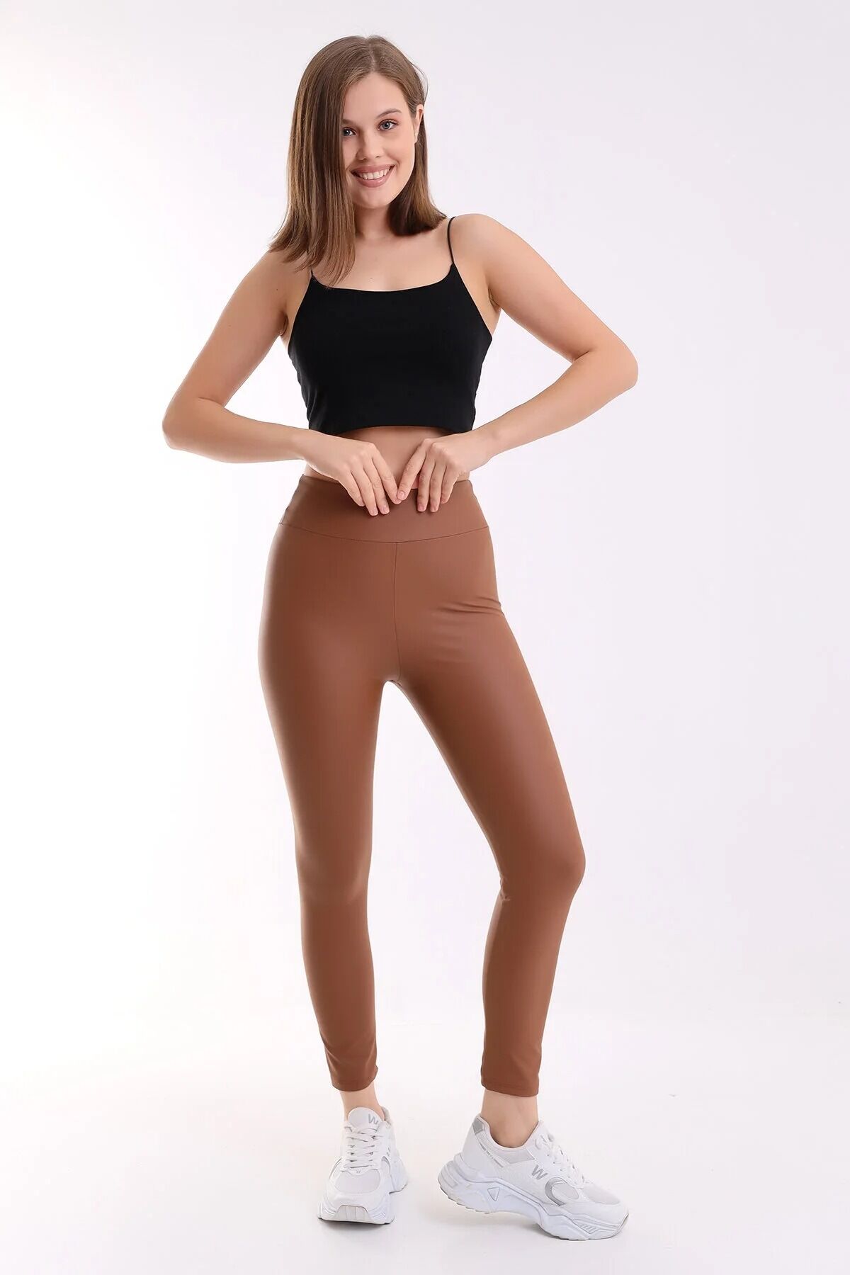 İçi Şardonlu Yüksek Bel Mat Suni Deri Tayt 1545 XS - KAHVERENGİ